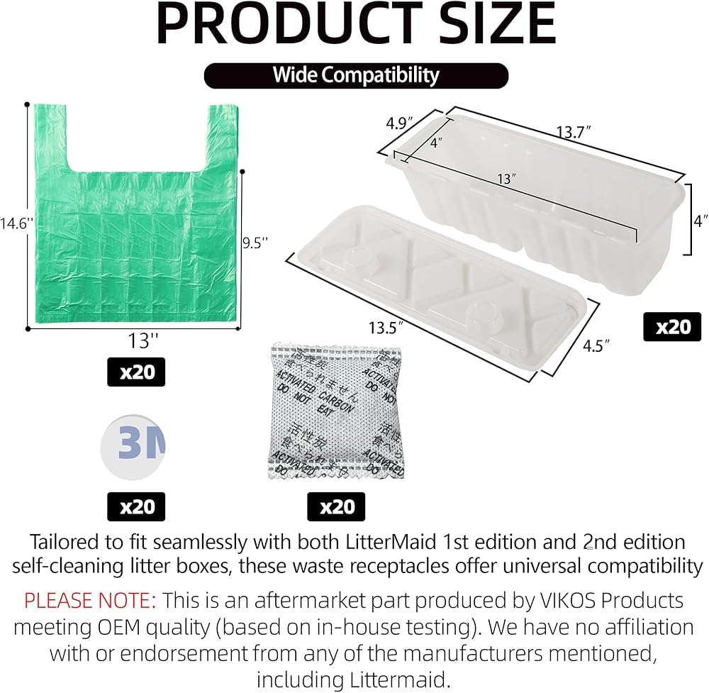 20 عبوة يمكن التخلص من النفايات القمامة التي يمكن التخلص منها أوعية نفايات متوافقة مع أوعية النفايات littermaid ، و (12 عبوة ، أسود) مرشحات القمامة القمامة Cat متوافقة مع منطقة PET Semi