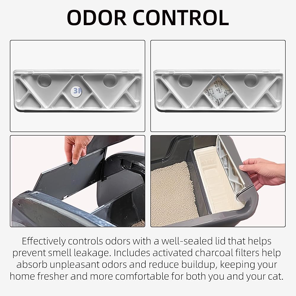 • التحكم في الرائحة - يتحكم بشكل فعال في الروائح بغطاء جيد الخبز يساعد على منع تسرب الرائحة. يتضمن مرشحات الفحم المنشط تساعد على امتصاص الروائح غير السارة وتقليل التراكم ، والحفاظ على منزلك طازجًا وأكثر راحة لك وللقطتك.