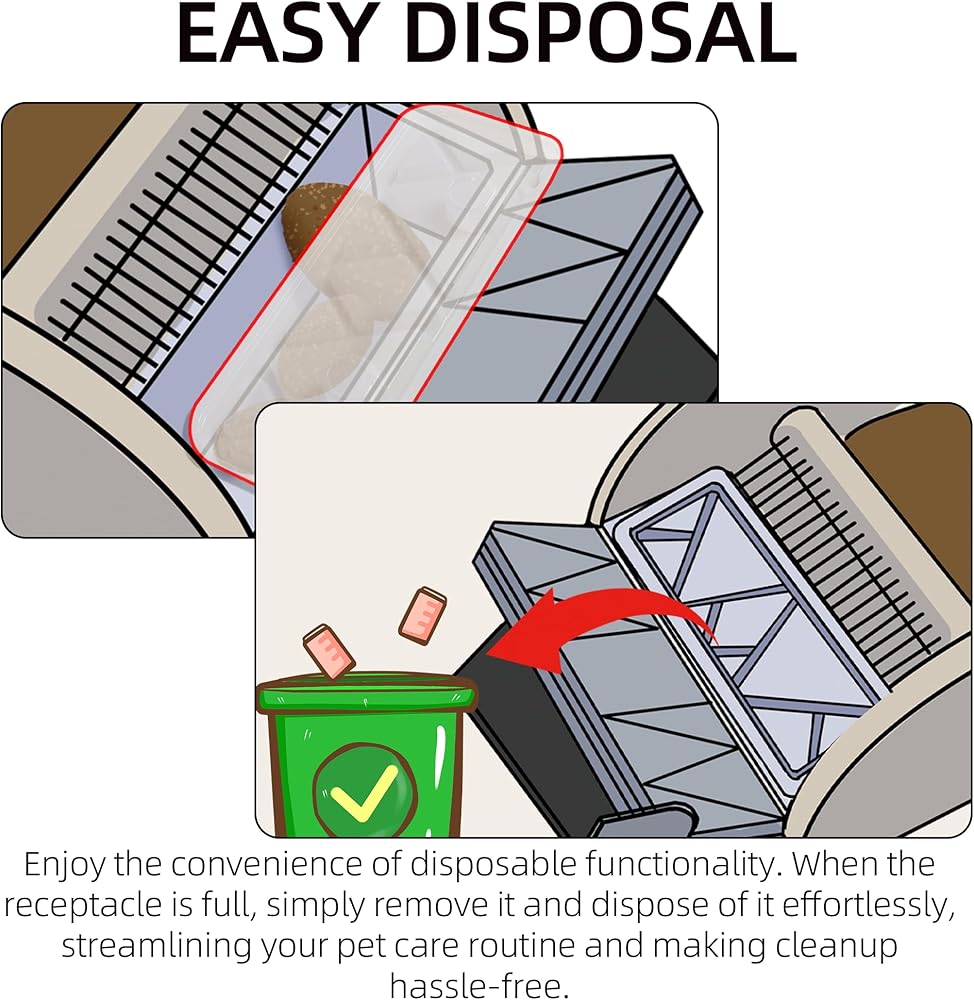 • من السهل التخلص - استمتع براحة الوظائف التي يمكن التخلص منها. عندما يكون الوعاء ممتلئًا ، ما عليك سوى إزالته والتخلص منه دون عناء ، مما يؤدي إلى تبسيط روتين رعاية الأليف الخاص بك وجعل التنظيف خاليًا من المتاعب.
