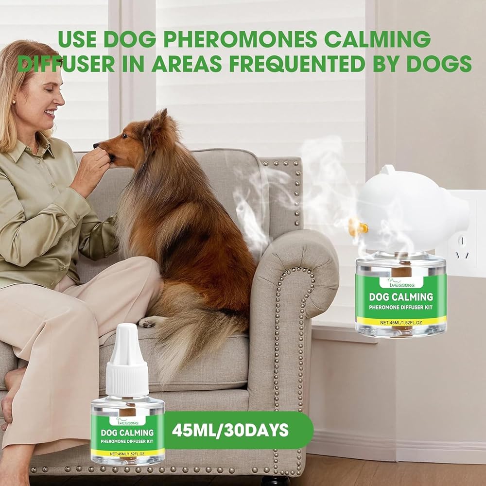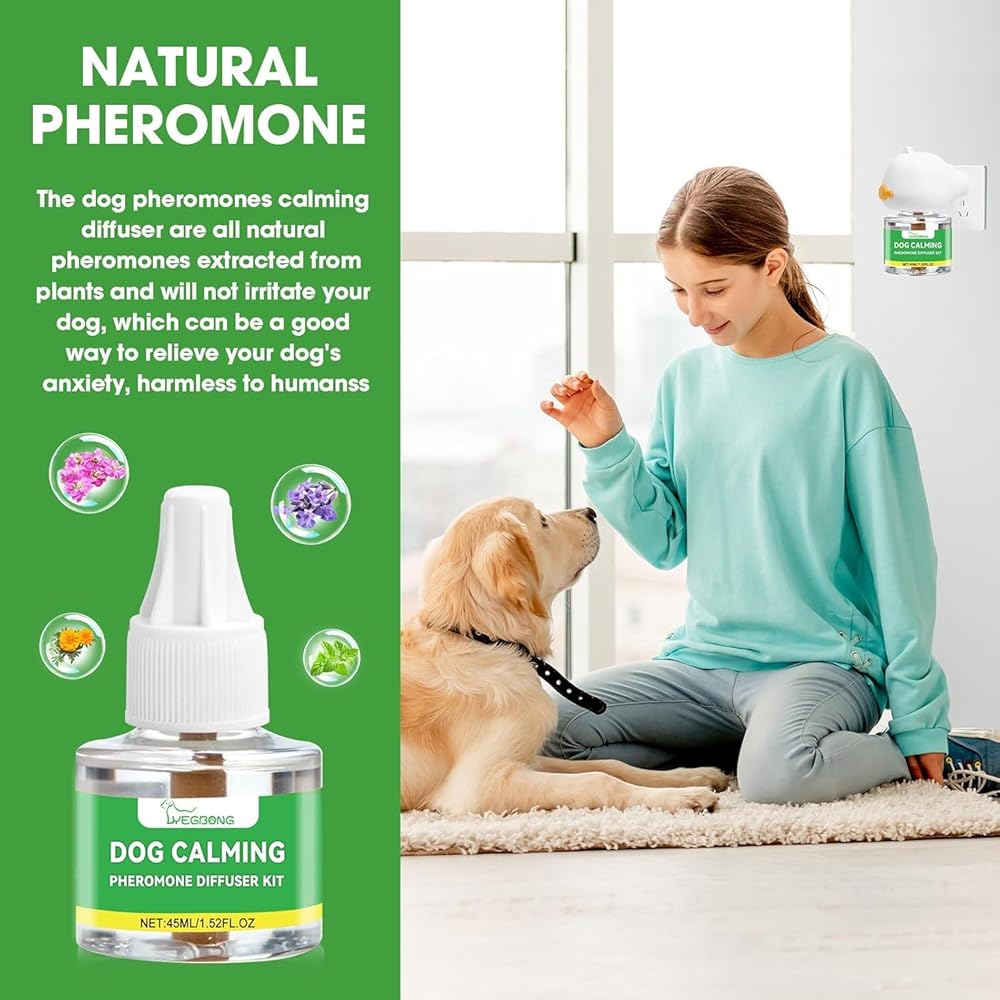 • Safe and Effective Natural Pheromones:Dog Calming Diffuser is made from safe, natural ingredients that mimic the pheromones found in female dogs to produce a comforting pheromone that calms dogs, creates a safe and comfortable environment, and removes fear and nervousness. The natural pheromone is colorless, harmless, and is suitable for reducing anxiety in dogs and is harmless to humans.