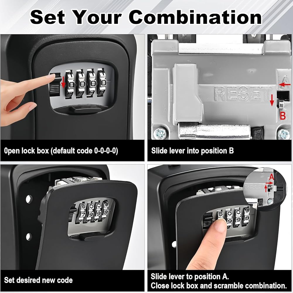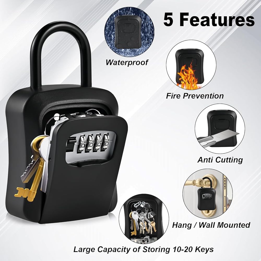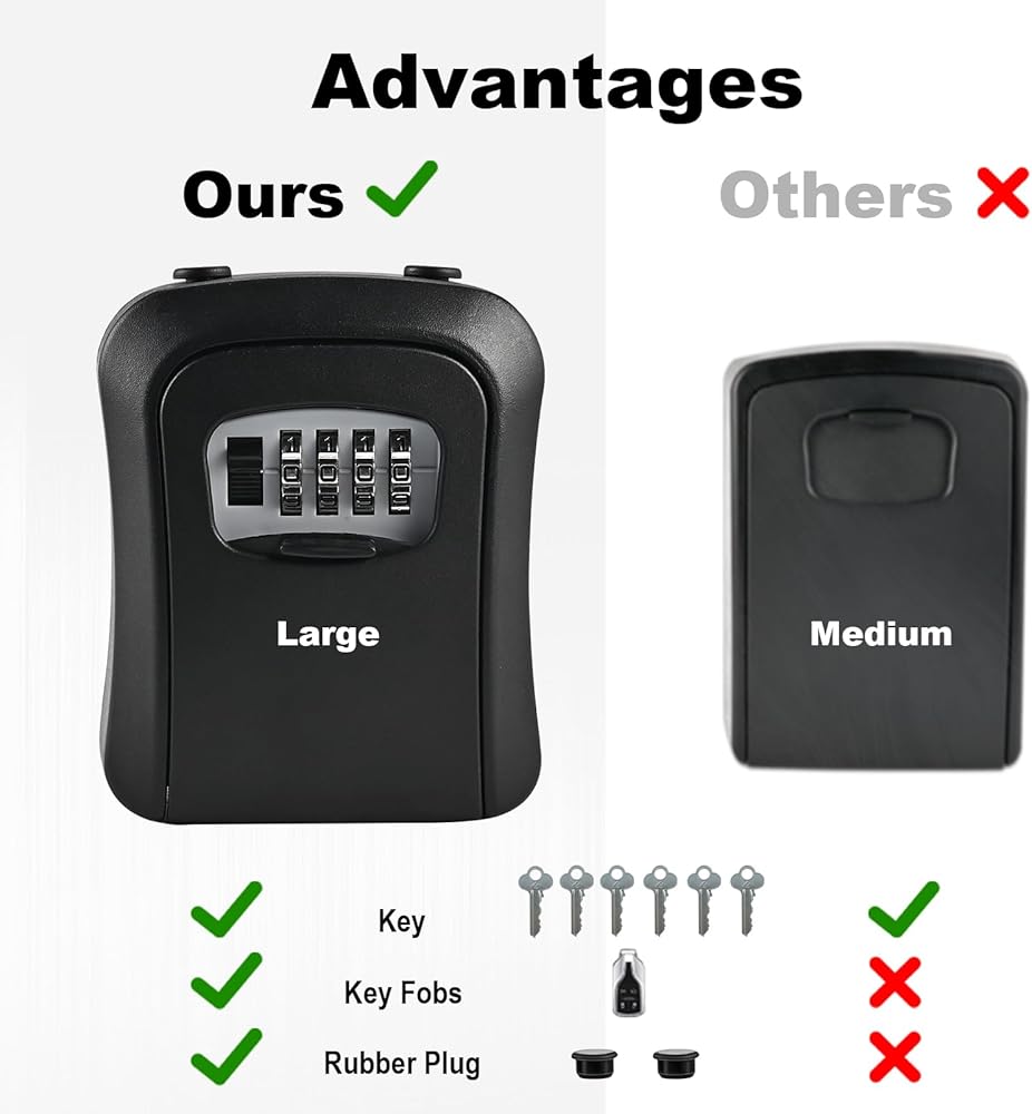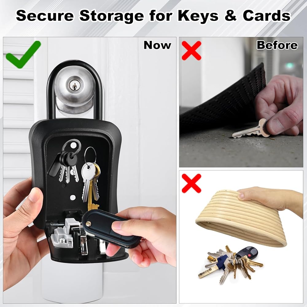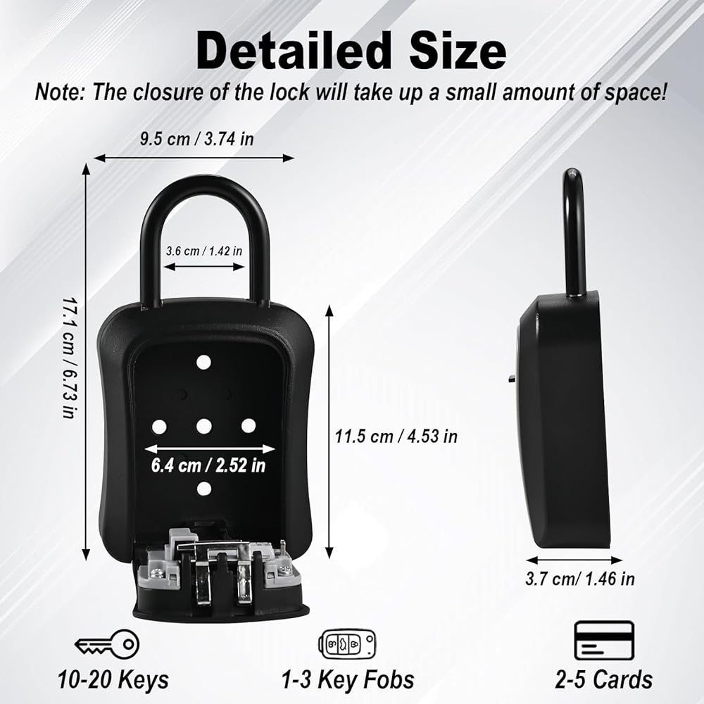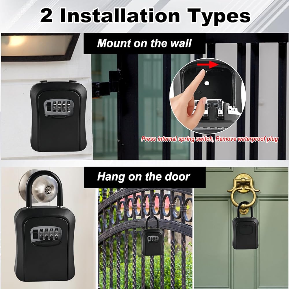 【Widely used】--The outdoor key lock box design provides ample space to store keys, bank cards, USB flash drives, and more. Lock boxes are suitable for realtor, cleaners, and pet caretakers to hide a key outside. It is also suitable for apartments, garages, gardens, shops, homes, supermarkets, companies, warehouses.