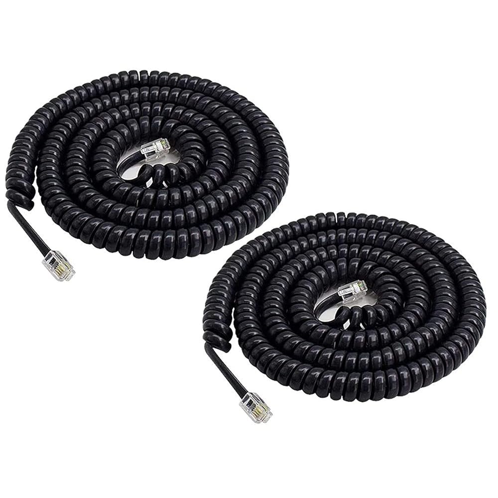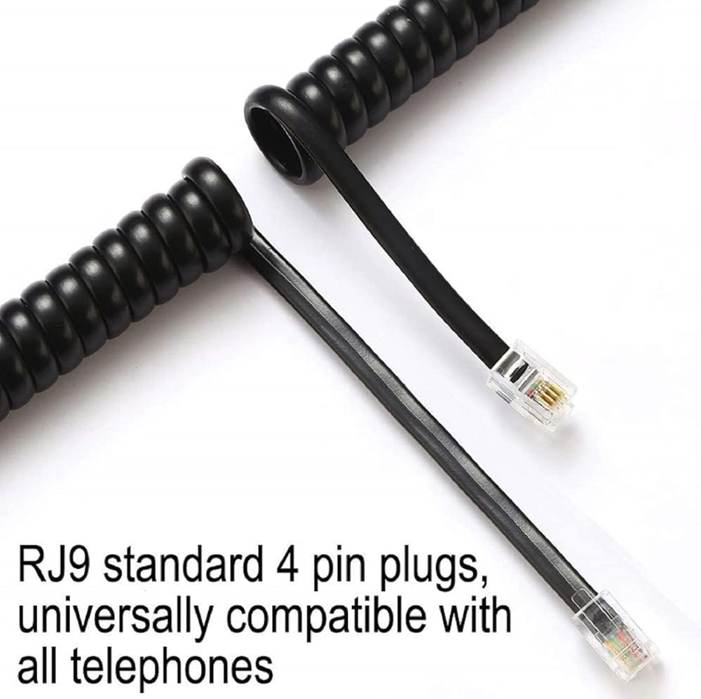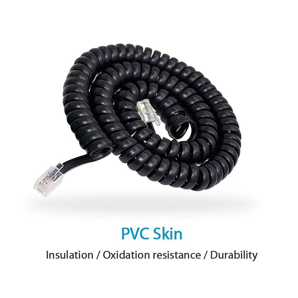 Telephone Handset Cord Black-Coiled Phone Cord-Phone Extension Cord RJ9 4P4C Gague