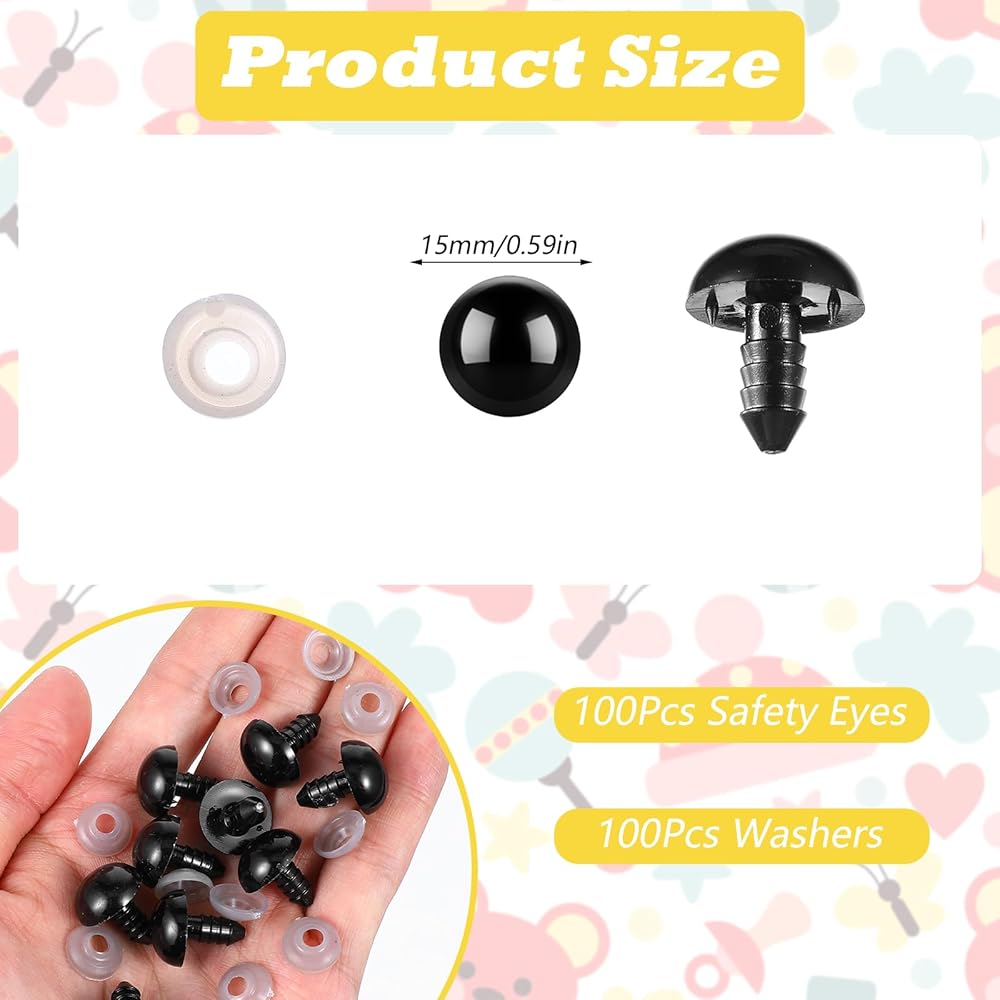【Value Package】You will receive 100 pcs 15mm safety eyes and 100 pcs washers, a total of 200 pieces. We have more quantity and will bring you a good enough making experience