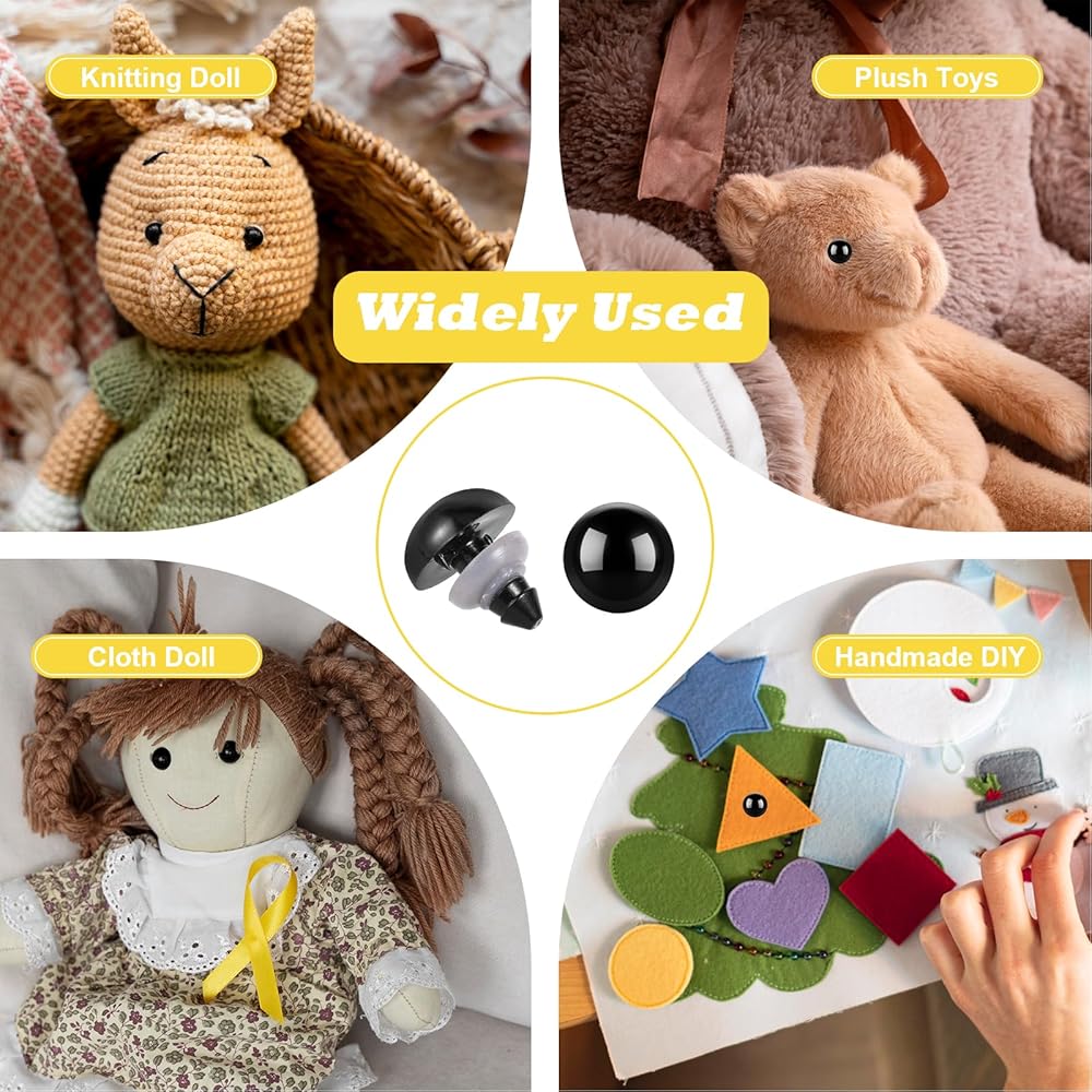 【Wide Application】 These 15 mm black plastic safety eyes are suitable for all kinds of handicrafts, bears, plush animals, amigurumi, stuffed animals, crochet and sewing projects, etc. In addition, it is also very suitable for crafts with festive elements, such as Christmas, New Year's, and Easter