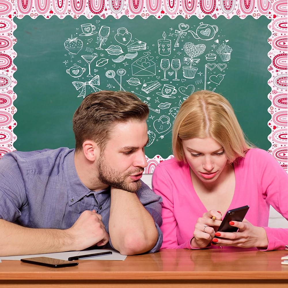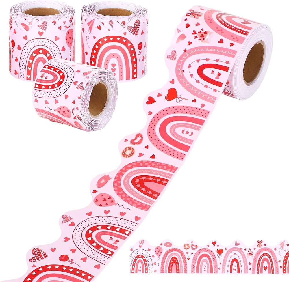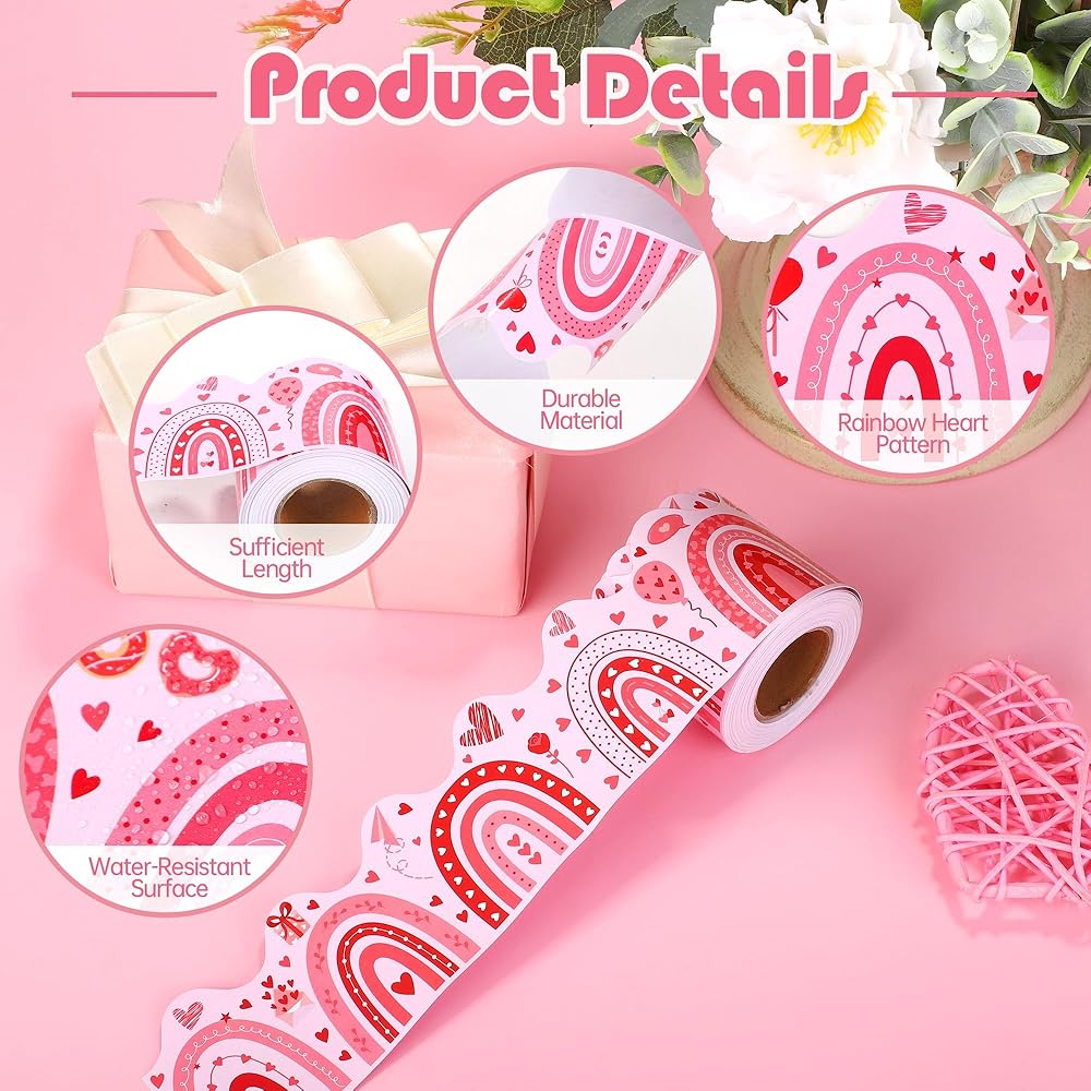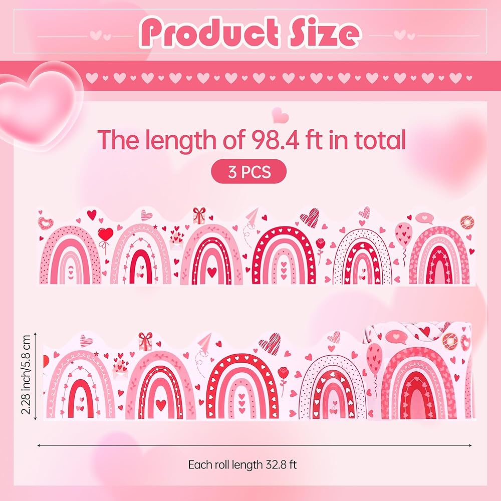 Aodaer 3 رولز 98.4 قدم عيد الحب لوحة الإعلانات الحدود صدفي الحدود الزخارف بوهو قوس قزح القلب ديكور الفصول الدراسية توالت نشرة الحدود تقليم لديكور الذكرى السنوية السبورة