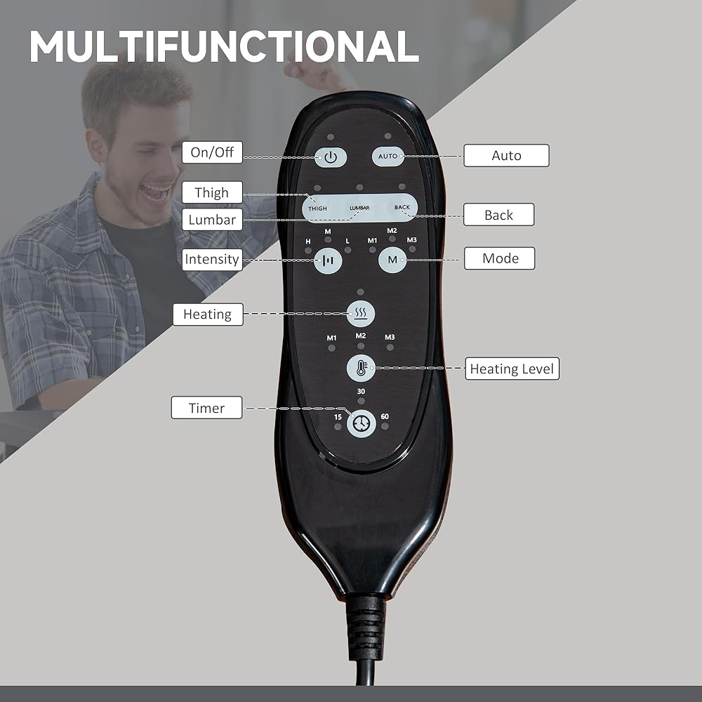 التشغيل السهل: يحتوي كرسي المكتب المريح هذا على جهاز تحكم عن بعد سلكي يمكنك استخدامه لضبط وظائف التدليك والحرارة حسب رغبتك. هناك جيب جانبي لتخزين جهاز التحكم عن بُعد عندما لا يكون قيد الاستخدام.