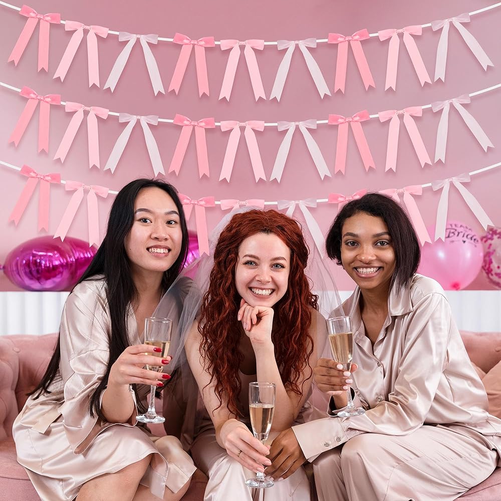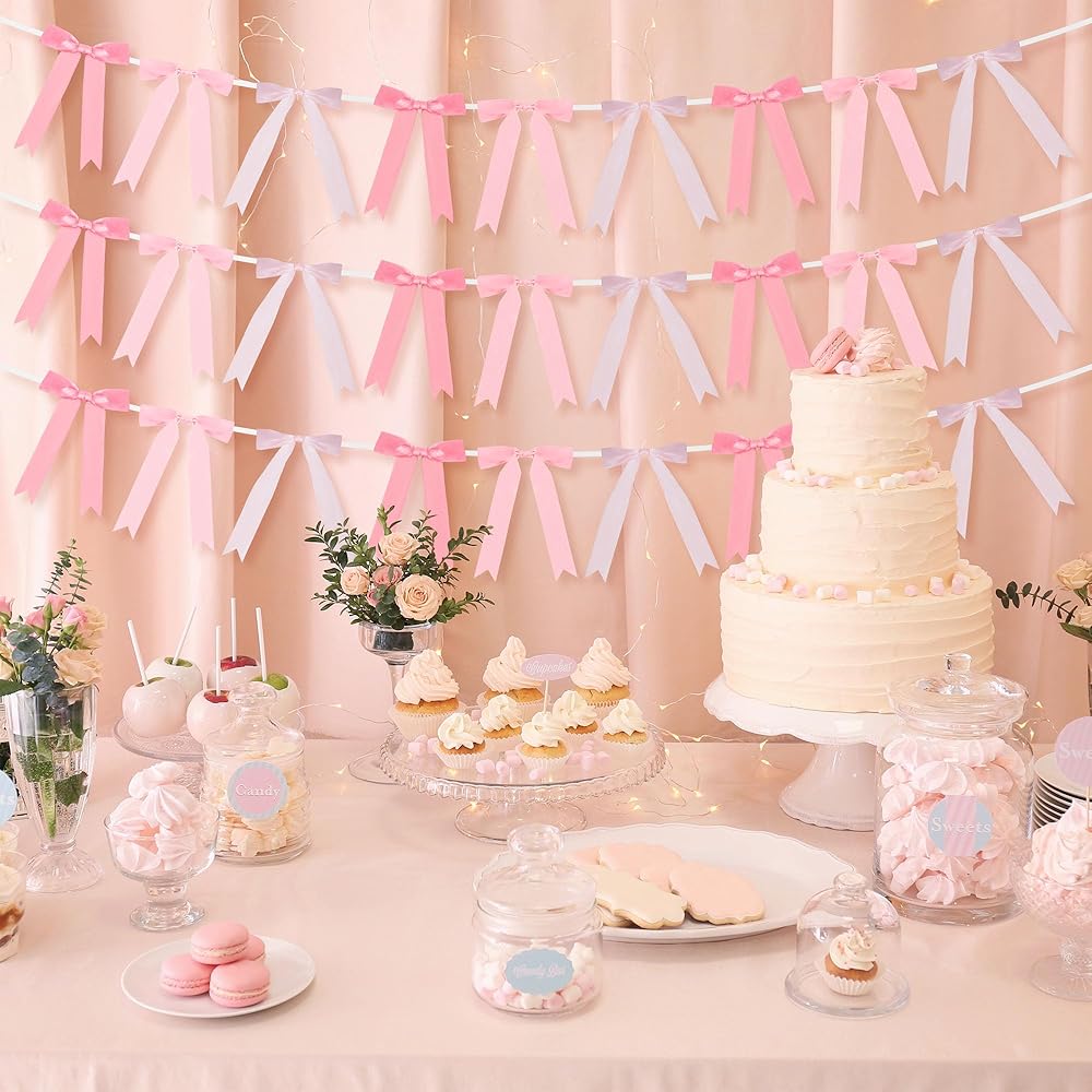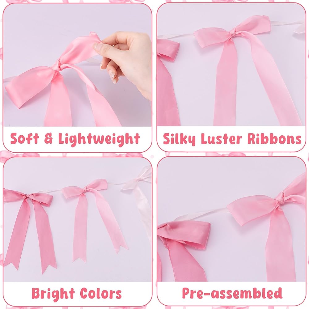 تصميم القوس الوردي الأنيق: تزيين مع أقواس شريط التدرج الوردي الناعم التي تمزج الأناقة الكلاسيكية مع سحر مرحة. هذه اللافتات رائعة لإنشاء خلفيات تستحق الصور في أعياد الميلاد وحفلات الزفاف والاستحمام للأطفال. قم بإشراق الحدث الخاص بك ويسعد ضيوفك بهذا الزخرفة الأنيقة والمبهجة.