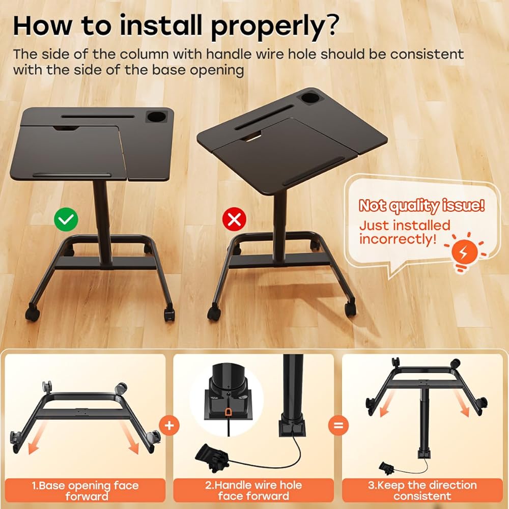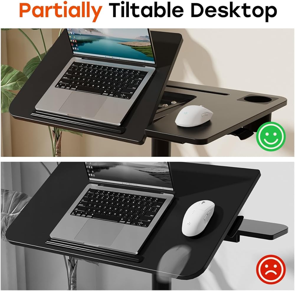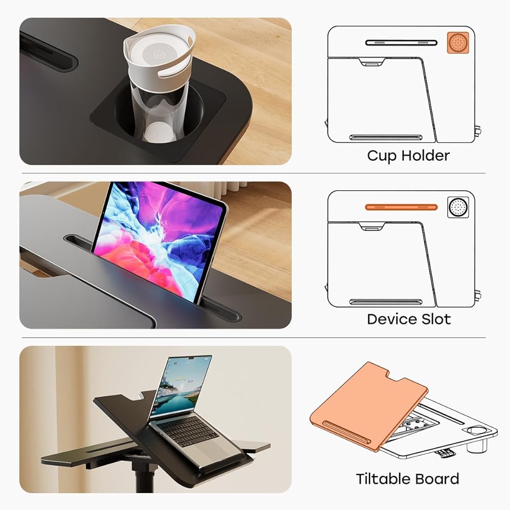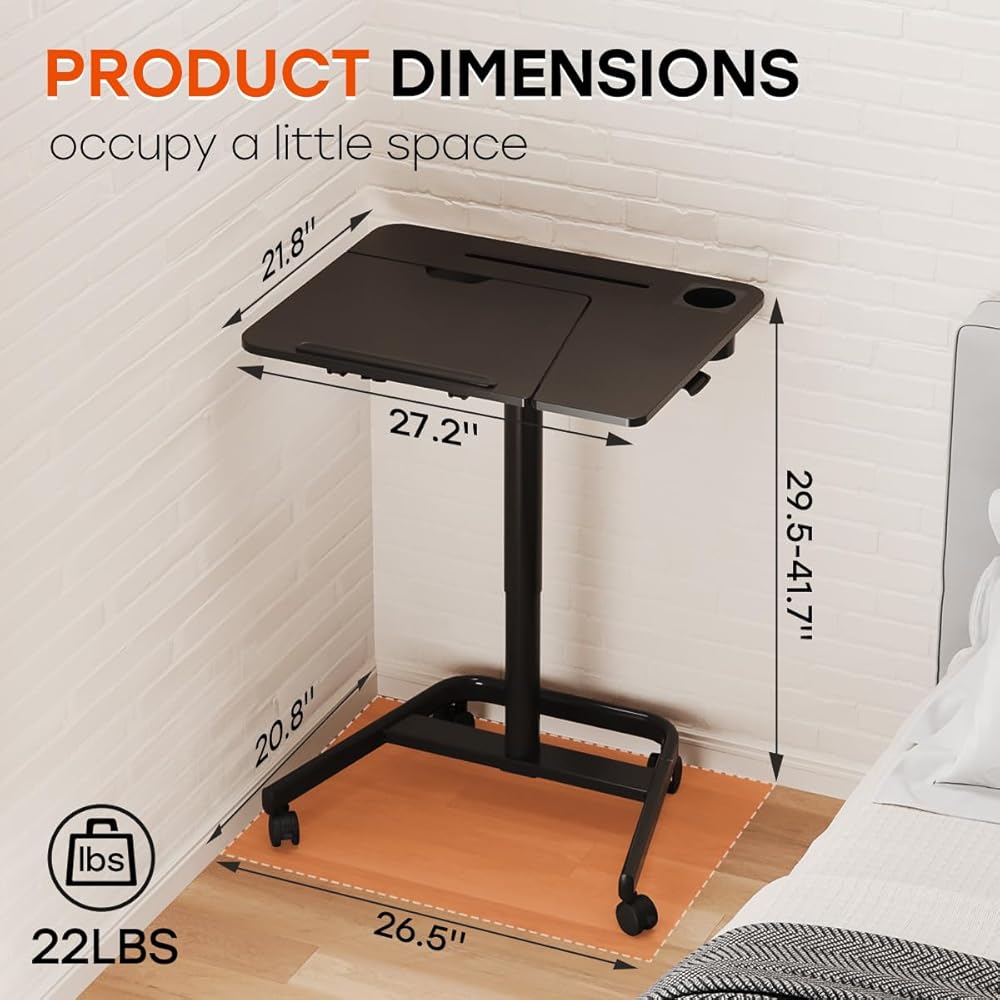 • ارتفاع ربيع الغاز adjsutment: يمكن ضبط ارتفاع مكتب الكمبيوتر المتداول من 29.5 "إلى 41.7" مع رفع زر واحد. باستخدام التكنولوجيا الهوائية ، تكون عملية الرفع ناعمة وسريعة وسهلة التبديل بين المواقف والوقوف