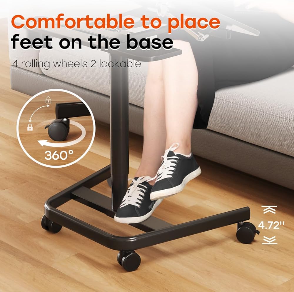 • العجلات المنقولة والقفل: يمكن إصلاح مكتب الكمبيوتر المحمول في أي موضع محدد عن طريق قفل عجلات الدوران ، ويمكنك تحريكه عن طريق إطلاق الفرامل. جوانب المائدة المستديرة تحميك من المطبات بشكل أفضل