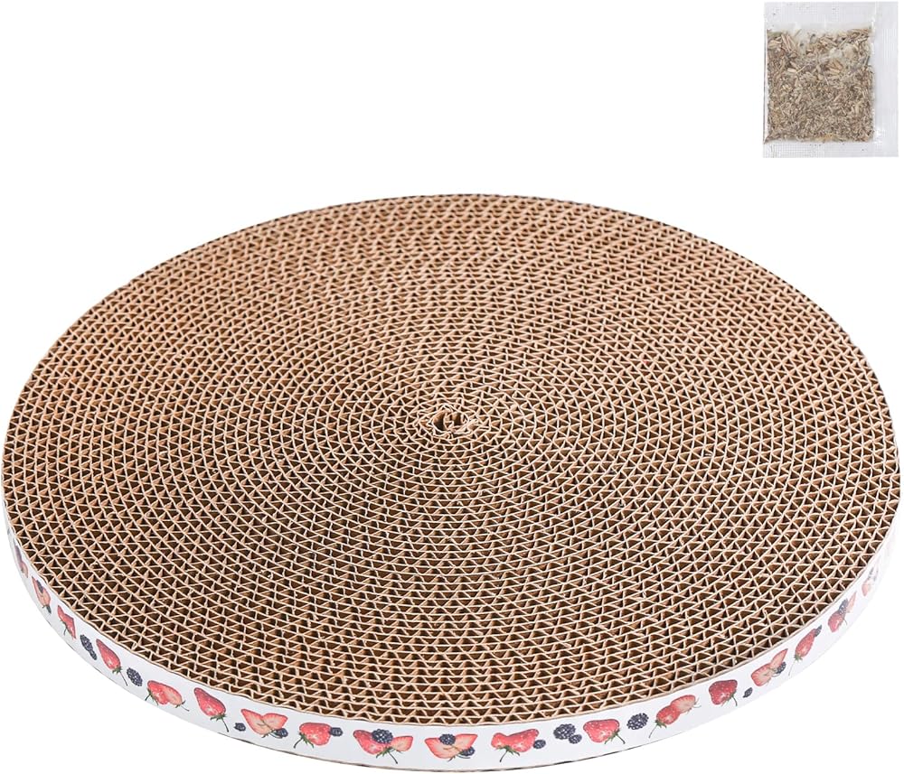 Keep your feline friend entertained and your furniture protected with this premium round cat scratcher refill pad. Measuring 10 inches in diameter and 3/5 inch in thickness, this circular scratching board provides the perfect surface for your cat's natural scratching instincts. The replacement pad is designed for indoor use and fits standard round scratching posts, making it an essential accessory for cat owners. The durable construction ensures long-lasting use, while the circular design allows your cat to scratch from any angle they prefer. Whether your cat likes to stretch, scratch, or simply mark their territory, this scratcher pad offers an irresistible texture that cats love. Easy to install and maintain, this refill pad helps extend the life of your existing cat scratcher while providing your pet with hours of healthy physical activity.