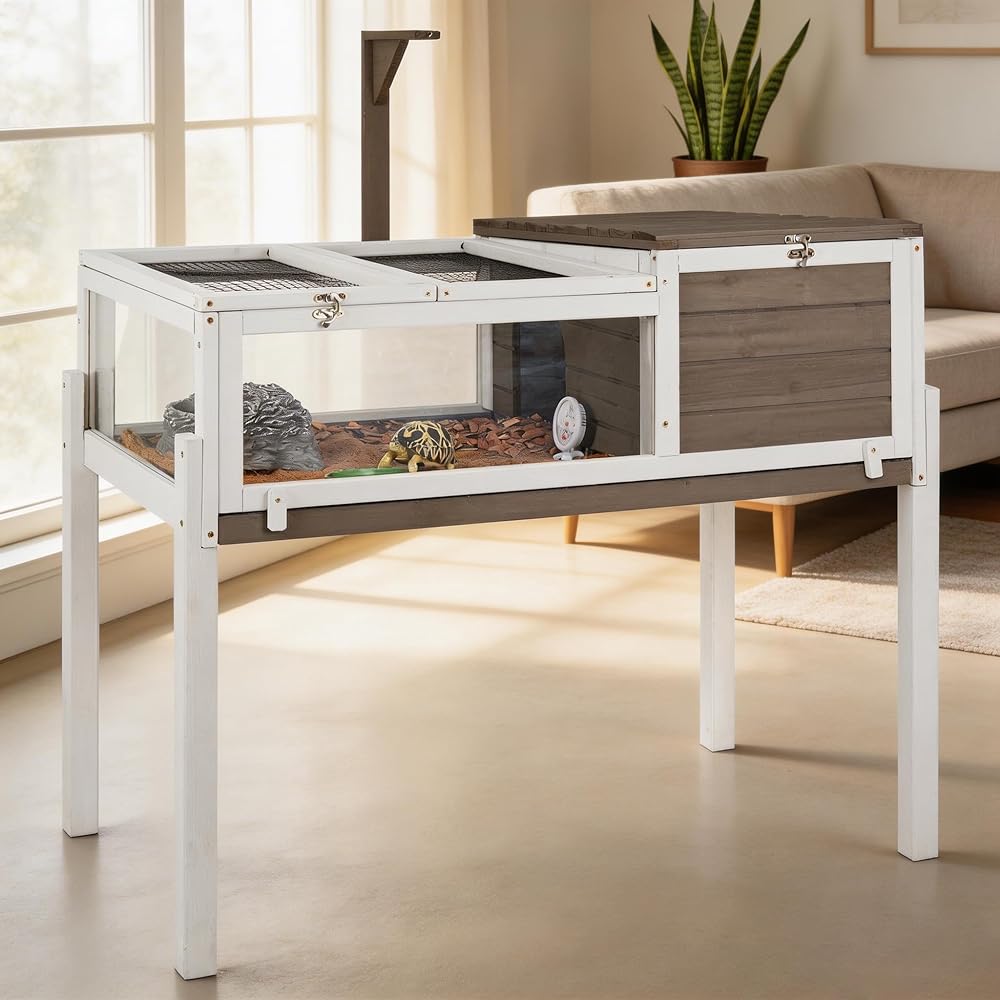 • 【موائل السلحفاة المكونة من غرفتين】 قم بإنشاء منزل مريح لسلحفتك مع موائلنا الفسيحة التي تتميز بتصميم فريد من غرفتين. سيقدر حيوانك الأليف منطقة الراحة ومنطقة لعب تصور. الحجم: 37.2 "W x 22.8" D x 46.8 "H.