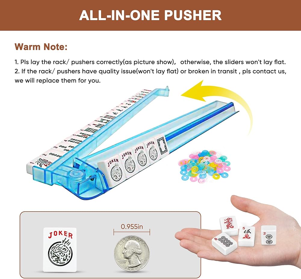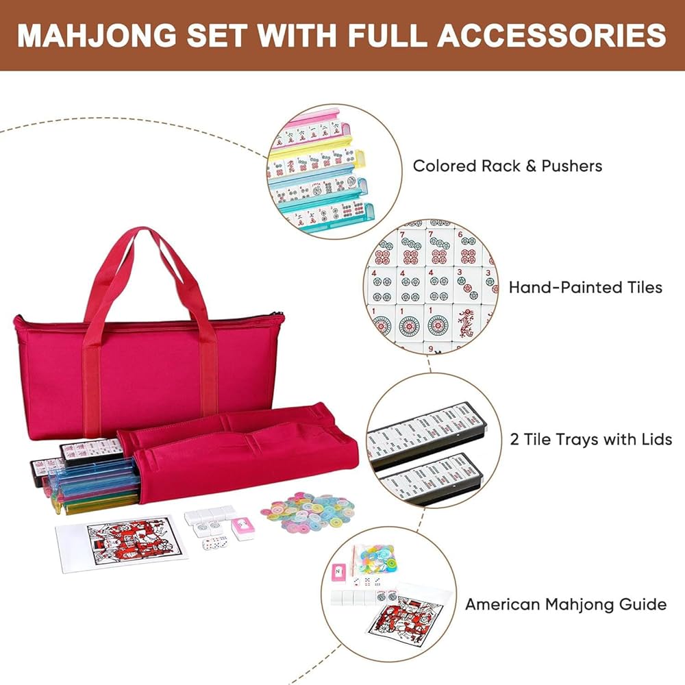 البلاط الممتاز: مصنوع من الميلامين الكثيف المقاوم للخدش ولديه شعور متين وقلق لطيف ، شخصيات واضحة بألوان حمراء وخضراء وسوداء يمكن التعرف عليها بوضوح. التفاصيل الدقيقة لمجموعة Mahjong American American سوف تثير إعجاب أصدقائك وعائلتك. من المعروف أن Mahjong هي لعبة عائلية ممتعة للغاية تساعد على ممارسة العقل من خلال تحفيز اللعب الاستراتيجي