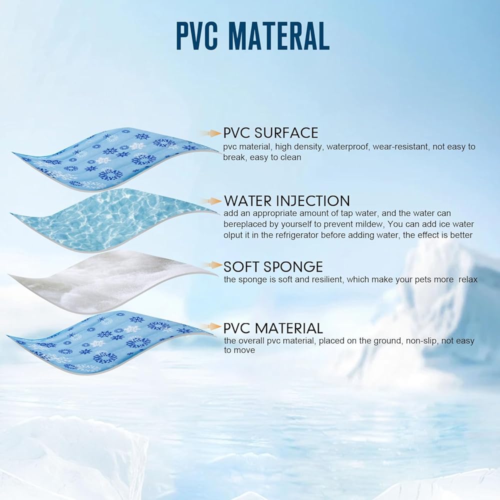 【إغاثة التبريد الفورية للحيوانات الأليفة- حافظ على أصدقاء فرويين باردين ومريحين مع حصيرة التبريد المتقدمة لحقوق المياه! ما عليك سوى ملء ماء الصنبور (أو الماء الجليدي للبرد الإضافي) لخفض درجة الحرارة بمقدار 5-10 درجة مئوية (9-18 درجة فهرنهايت). رائعة في أيام الصيف الحارة ، تساعد حصيرة تبريد الكلاب هذه على منع ارتفاع درجة الحرارة والجفاف ، مما يوفر تراجعًا منعشًا للكلاب والقطط من معظم الأحجام
