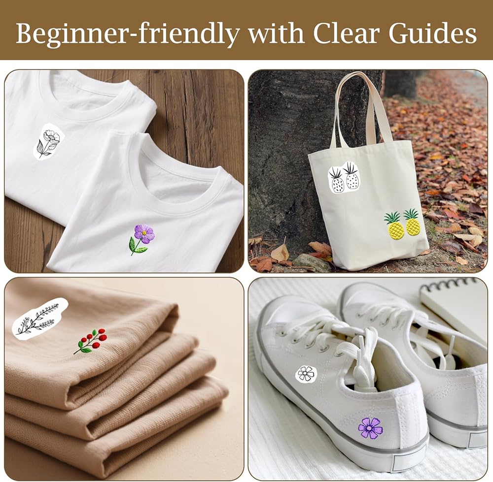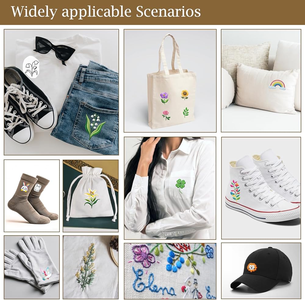 Rich Styles: Designed for crafters who crave variety, each set vibrant pre-printed patterns inspired by blooming florals, charming animals, and lush botanicals. Our stick and stitch embroidery designs turns every project into a masterpiece.