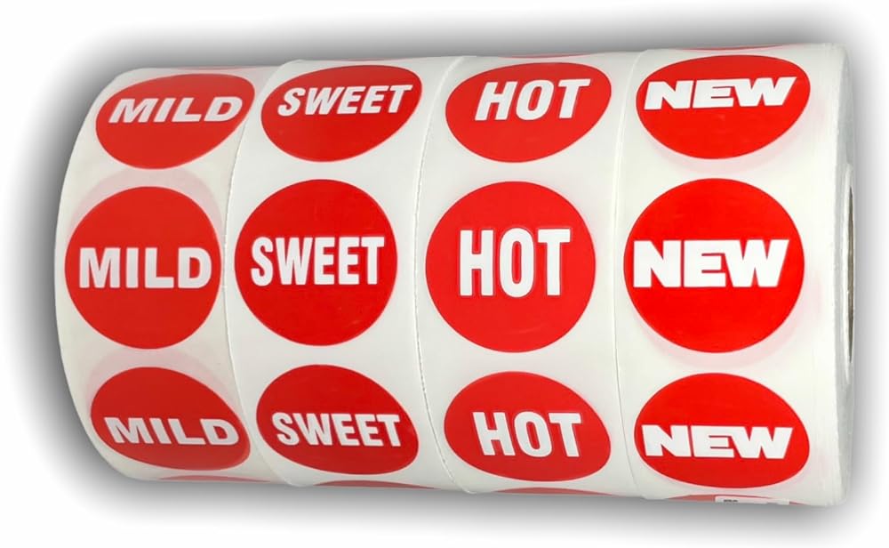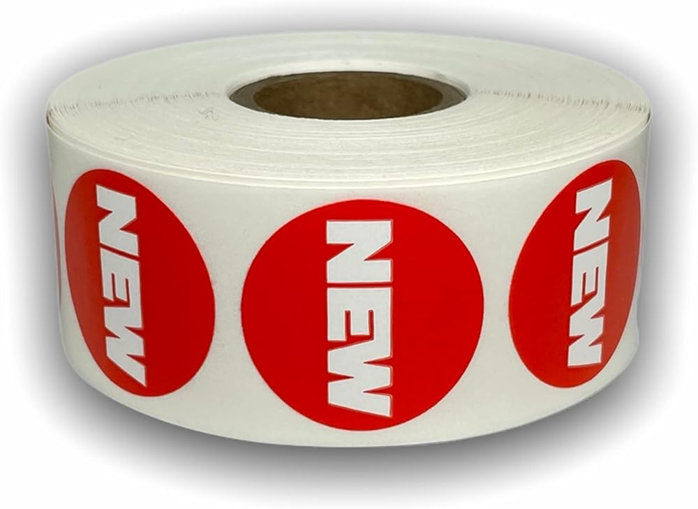 You will receive 1 roll with 1000 labels on each roll. Red NEW stickers with easy-to-read white text on a 1.125" round label.