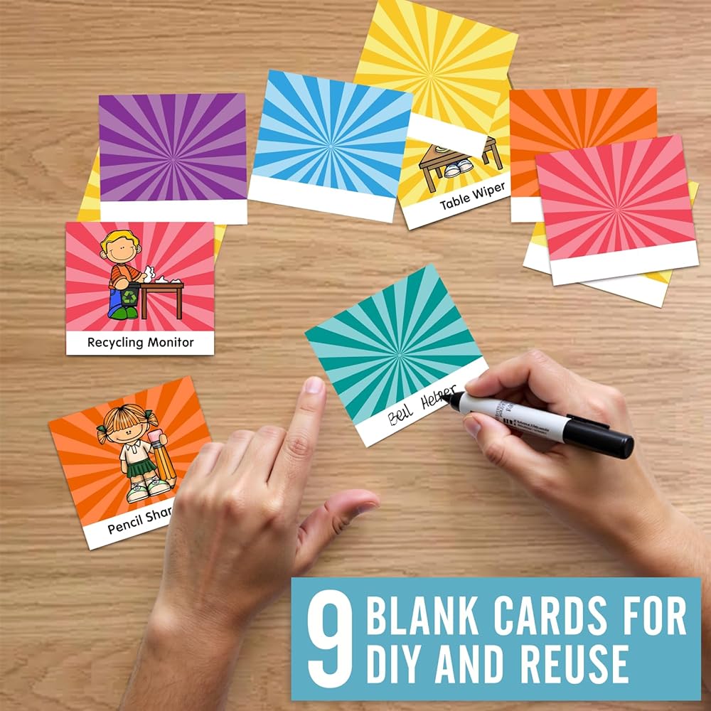 مخطط الجيب في Ultimate Job مع 47 بطاقة ملونة - تحتوي مجموعة Bulletin Bulletin على بطاقة Banner 2 ، و 36 بطاقة مهمة ، و 9 بطاقات فارغة قابلة للمحو ، و 40 مقاطعًا. الكثير من البطاقات تجعل حياتك في الفصل أسهل!
