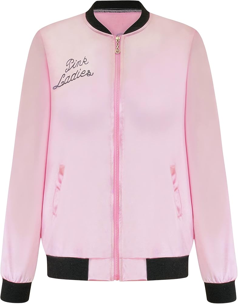 تشمل العبوة: زي الهالوين بمقاس قياسي للبالغين للنساء - سترة من الساتان الوردي من الخمسينيات، وسراويل ضيقة من الجلد الصناعي قابلة للتمدد، وأوشحة منقطة، ونظارات شمسية للقطط، وزوج من الأقراط مستوحاة من الخمسينيات وعصابة رأس من الخمسينيات.