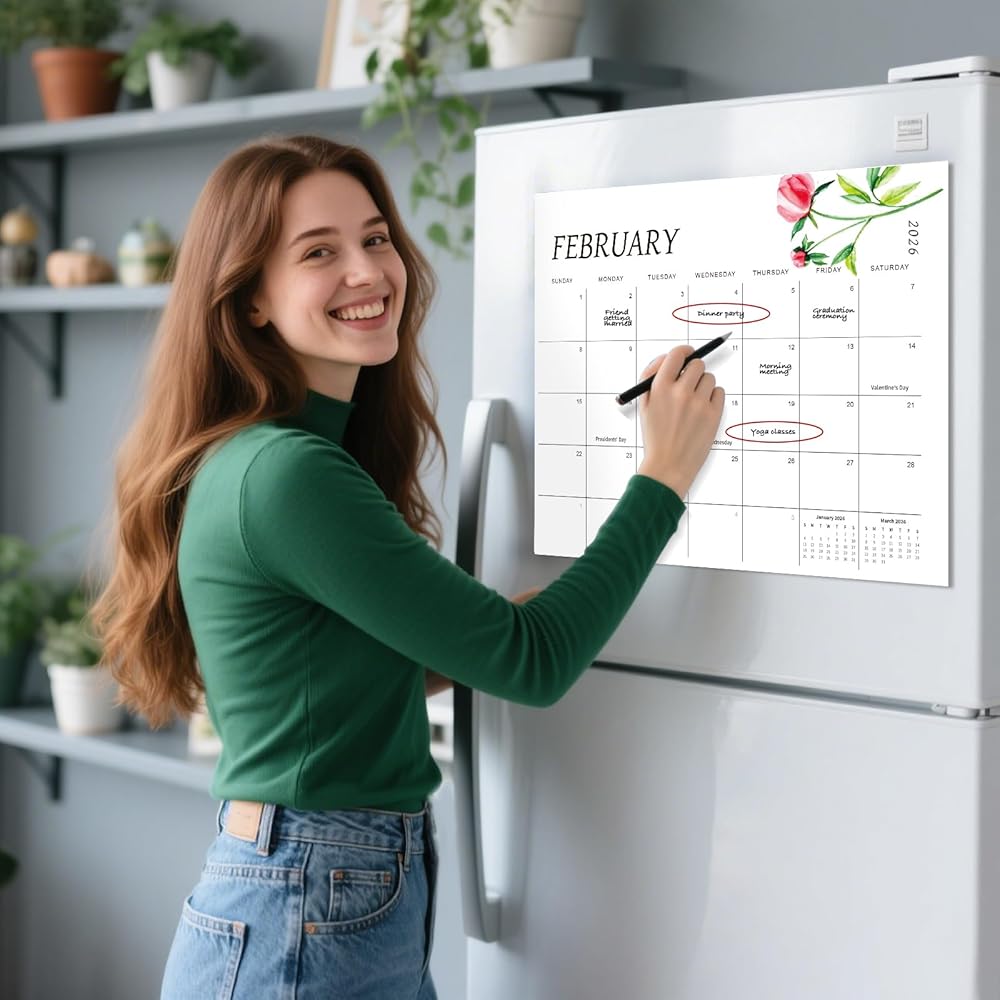 مثالي للمنزل والمكتب - سواء كان ذلك يستخدم كتقويم ثلاجة أو تقويم للثلاجة ، فهو مثالي لإدارة الأنشطة العائلية أو المواعيد النهائية للمكاتب. يقدم هدية مدروسة للنساء والمهنيين المشغولين.
