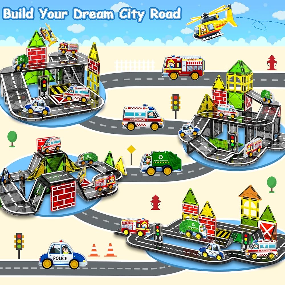 مجموعة سيارات طريق البلاط المغناطيسية ، ولبنات البناء المغناطيسية للأطفال ، وتعلم ألعاب مونتيسوري الحسية للفتيات البالغ من العمر 3-8 سنوات ، وهدايا عيد ميلاد للفتيات البالغين من العمر 3-8 سنوات ، وألعاب STEM For Toddler