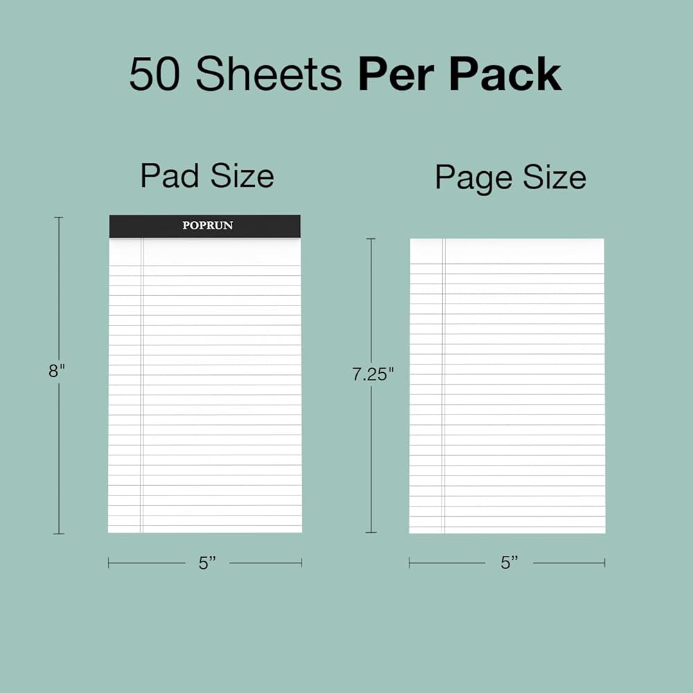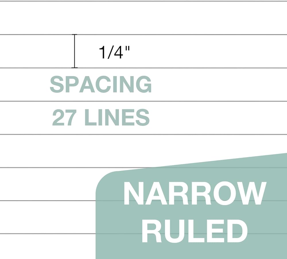 الحجم تمامًا وحكم الكلية-9/32 ": كل ورقة 8.5" × 11.75 "(ورقة رسائل) تتميز 34 ورقة مبطنة لكل جانب (على الوجهين) ، أو الأمثل للملاحظات ، أو المقالات ، أو الطباعة. أبيض مشرق من أجل الوضوح.