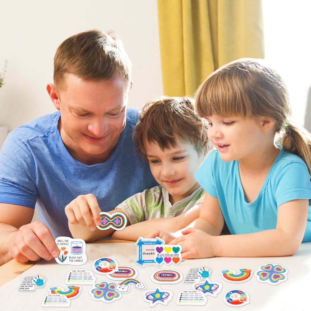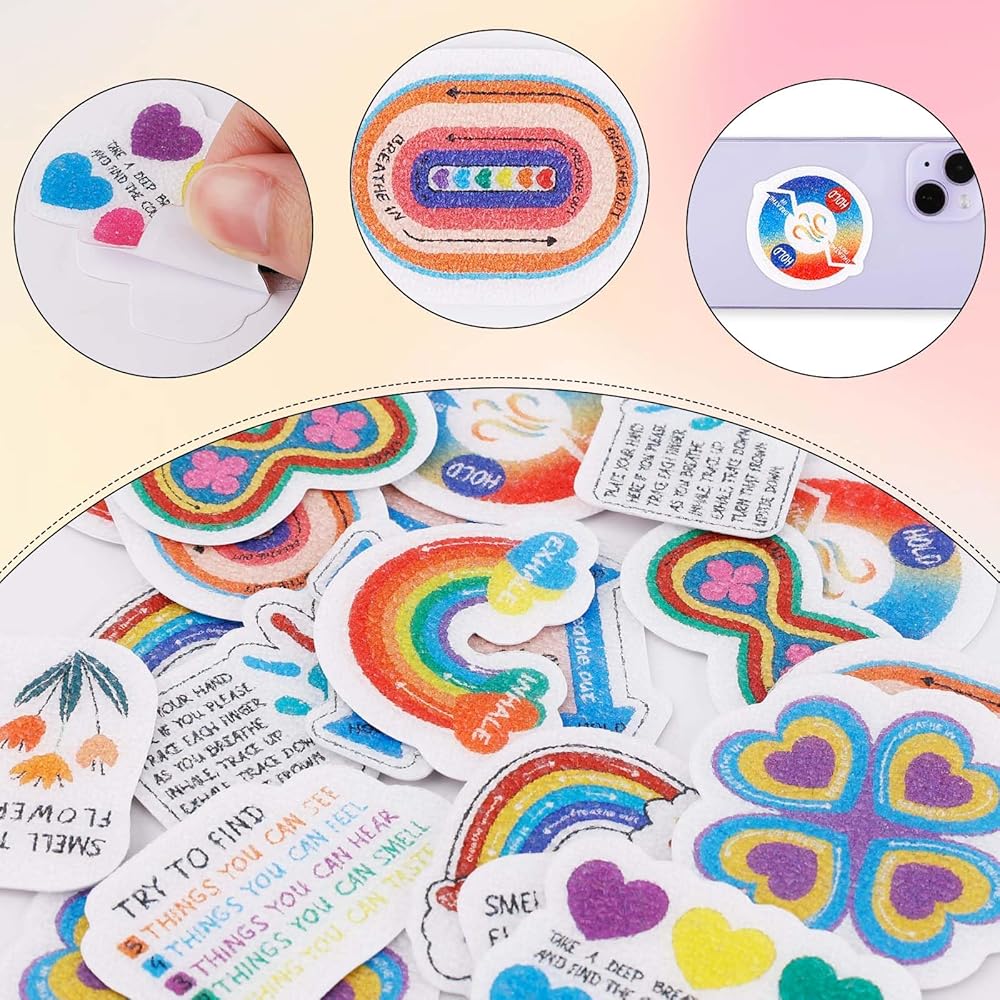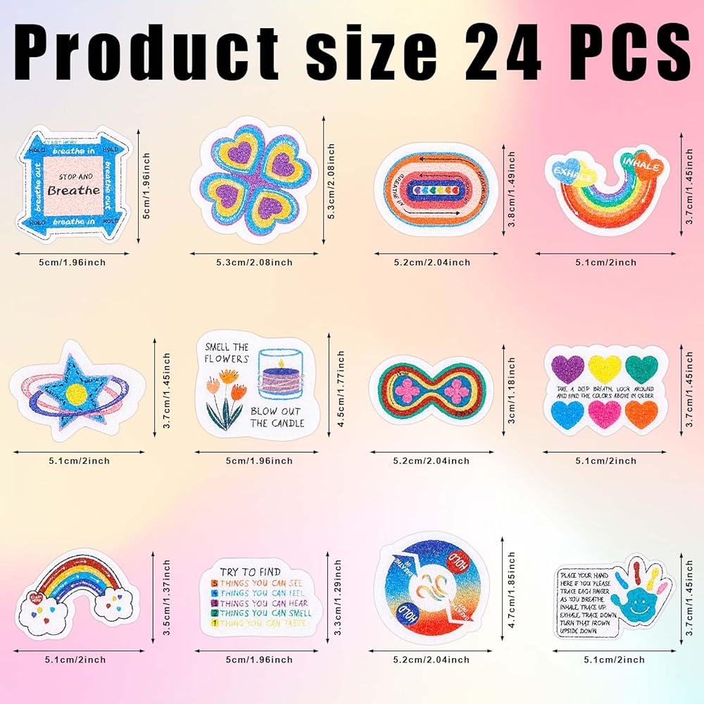 محتوى الحزمة: ستتلقى 24 قطعة من الملصقات الهادئة ، ولديها 12 شكلًا وبعض الألوان الجميلة وقطعة من كل نمط. تحتاج فقط إلى لمس السطح الخشن بأطراف أصابعك لتقليل التوتر على الفور من العمل والحياة. لن يصرفوا الآخرين. يمكن أن تساعدك على الهادئة والاسترخاء.