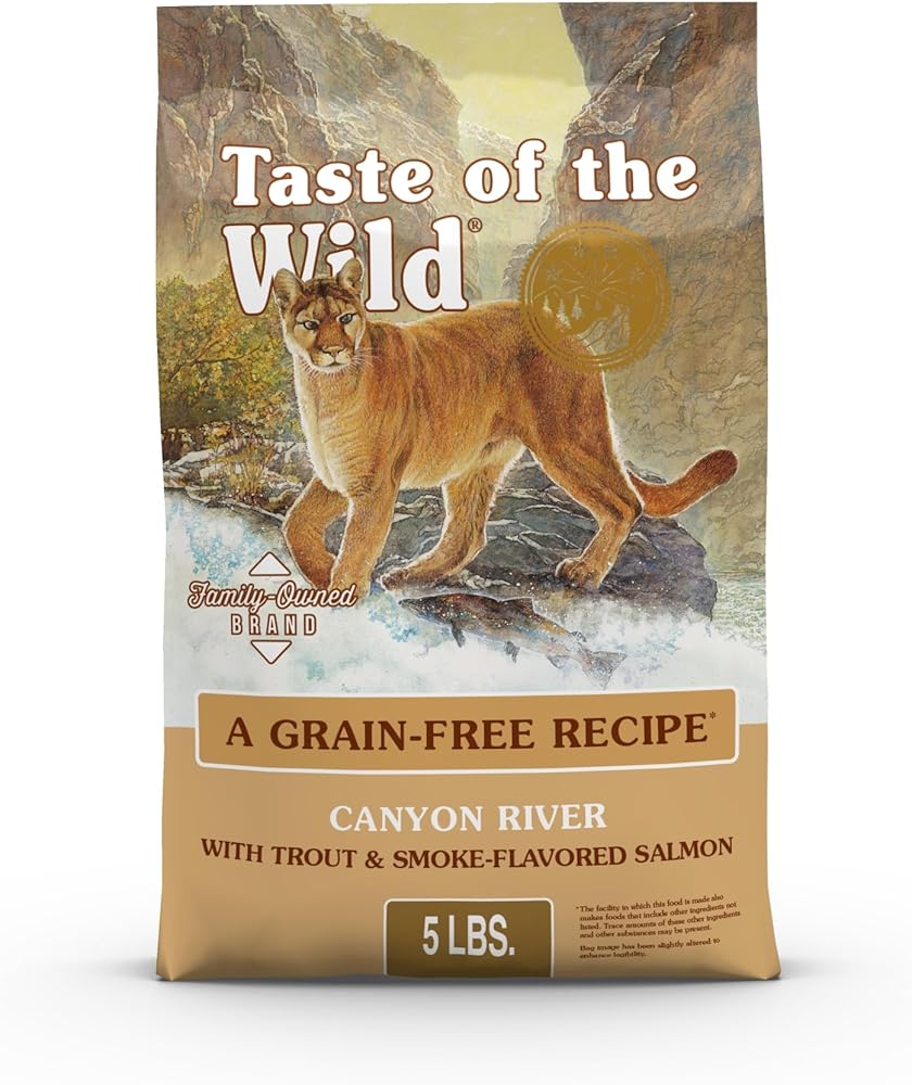 Taste of the Wild Canyon River with TROUT and SMOKE-FLAVORED SALMON dry cat food; high protein content (32%) helps support bones, joints and a LEAN, HEALTHY BODY CONDITION; fish is the only source of animal protein in this recipe