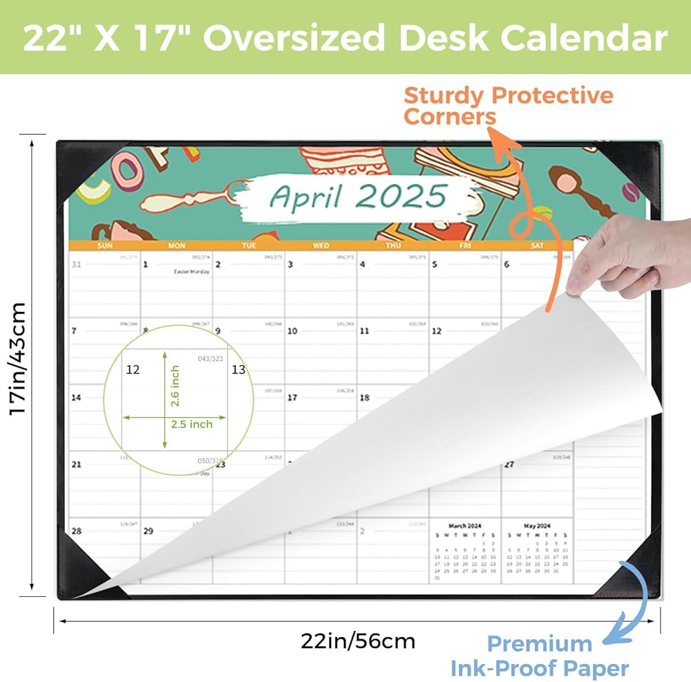 التذكير اليومي المرئي: التقويم المكتبي 2025 كبير 22x17 هو أداة عملية للتخطيط على المدى الطويل! يساعد في تنظيم الأحداث الاجتماعية مع أصدقائك أو عائلتك! حدد تذكيرًا بأنك لن تفوت التواريخ والمواعيد النهائية المهمة ، مثل أعياد الميلاد والذكرى السنوية والمواعيد والاجتماعات.