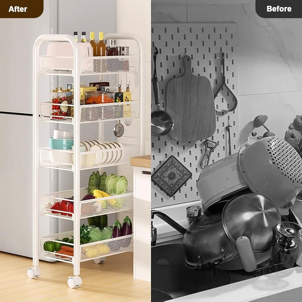 Perfect for kitchens, dining areas, or living rooms, the YardGo Kitchen Cart maximizes your storage capacity without taking up much floor space. The durable metal frame supports heavy loads, making it ideal for everyday use. Whether you need a convenient spot for snacks or a mobile storage solution for your cooking essentials, this 5-tier vegetable basket cart is the perfect choice.