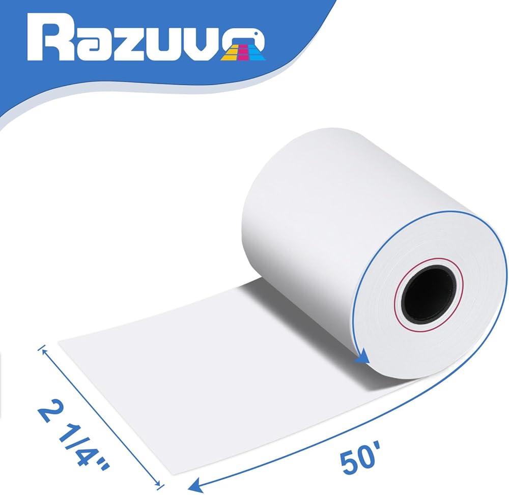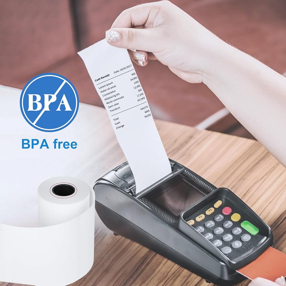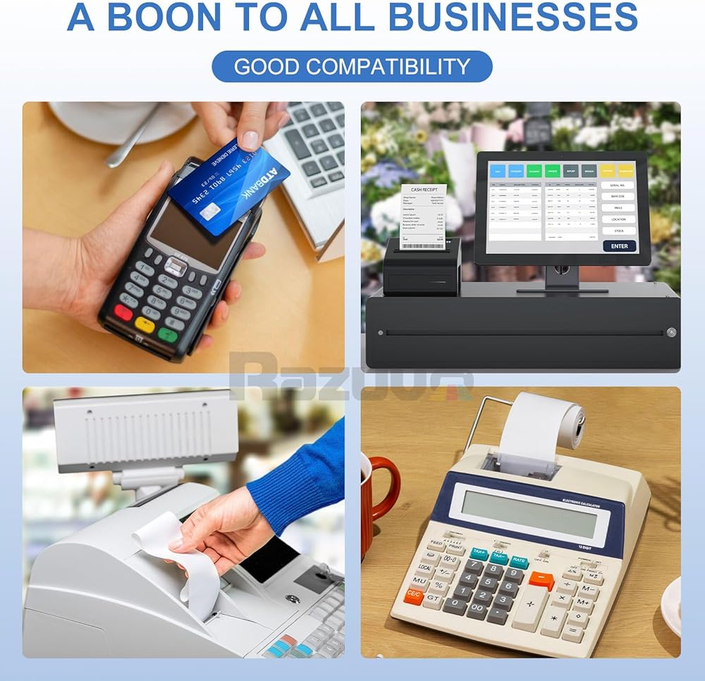 العرض والجودة: يقيس كل لفة ورقية حرارية 2 5/16 بوصة (58 مم) في العرض ، مصنوع من ورق حراري عالي الجودة يضمن طباعة واضحة واضحة لجميع احتياجات المعاملات الخاصة بك
