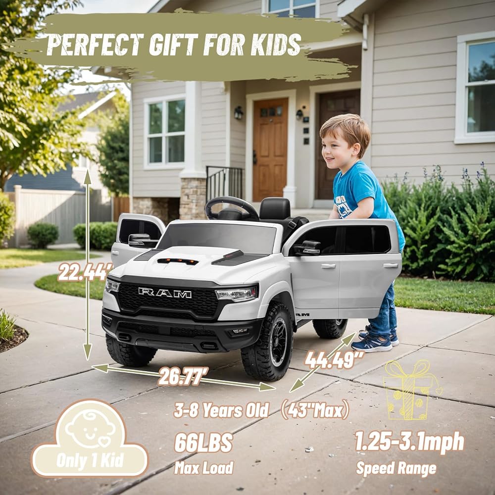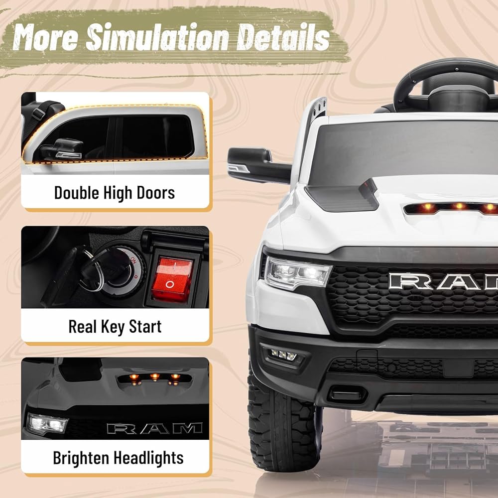 تصميم RAM 1500 الأصيل: جرب التشويق مع هذا الركوب المصرح به رسميًا على RAM 1500 على السيارة. يعكس تصميم الشاحنات الأيقوني السيارة الحقيقية ، مما يوفر للأطفال مغامرة قيادة أصيلة تبرز.
