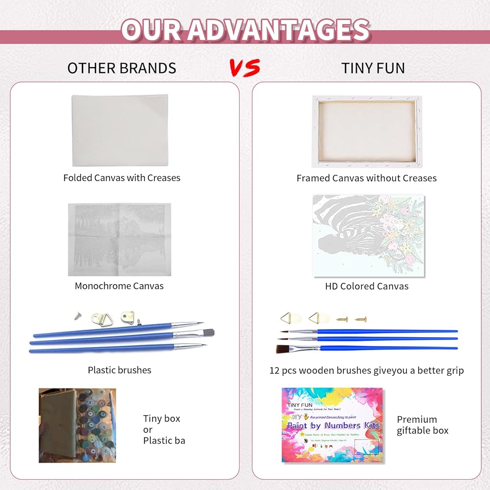 🎨 جاهز - إلى - الطلاء وجاهز - إلى - تعليق : جميع اللوحات الممتدة مسبقًا على إطارات خشبية متينة (لا يلزم تأطير إضافي!). تجعل الأقسام المرقمة المطبوعة مسبقًا رسمًا نسيمًا - مجرد تطابق ألوان للأرقام. بمجرد الانتهاء ، يمكنك عرض عملك الفني على الفور كديكور لغرفة النوم أو غرفة المعيشة أو المطبخ!