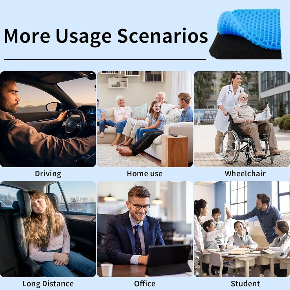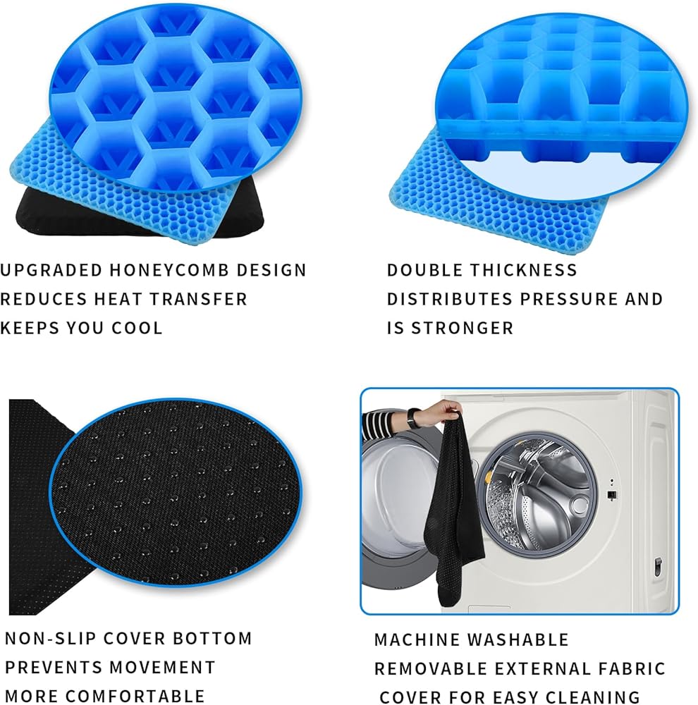 راحة فائقة للمحركات الطويلة: تم تصميم وسادة مقعد الجل (18.5*17.3*1.6 بوصة) لتعزيز الراحة خلال فترات طويلة من الجلوس ، مما يجعلها مثالية لرحلات السيارات أو التنقلات اليومية أو الرحلات البرية. إنه يتميز بتصميم مميز للهلام يساعد على توزيع وزنك بالتساوي ، ويقلل الضغط على عظمة الخلفي ، أسفل الظهر ، والوركين. سواء كنت تقود سيارتك لساعات أو مجرد الجلوس في سيارتك لفترة من الوقت ، توفر هذه الوسادة دعمًا ممتازًا لإبقائك مرتاحًا وخاليًا من الألم