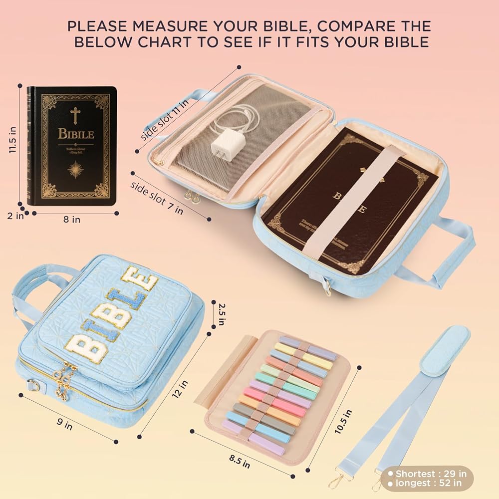 حل التخزين متعدد الاستخدامات: النساء حجم حالة الكتاب المقدس: 12*9*2.5 بوصة. يستوعب التصميم الفسيح الأناجيل الكبيرة والمنتظمة والصغيرة ، والتي تتميز بجيوب داخلية متعددة وجيب سحاب خارجي لتخزين مريح لهاتفك والأقلام وغيرها من الضروريات.