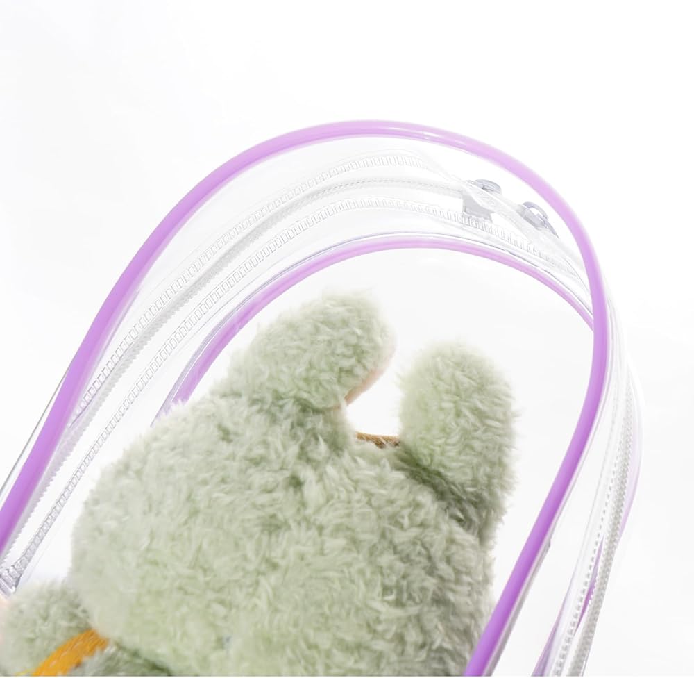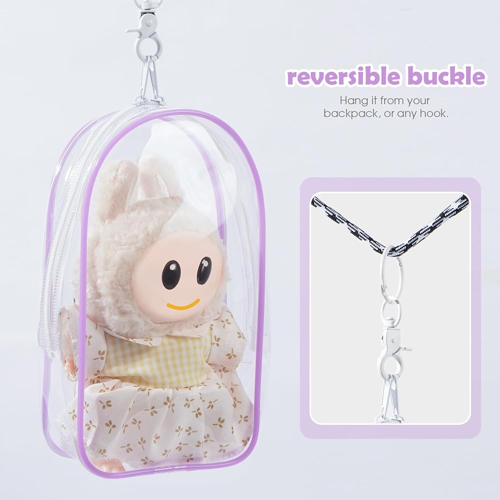 حقيبة عرض الشكل الأرجواني واضحة الشكل مع سلسلة مفاتيح للدمى ، حقيبة تخزين للدمى الإيجابية ، سحر سلسلة مفاتيح الحقيبة للمقتنيات (مع سحاب- مقاوم للماء) كيس تخزين لبنة ، 7.4 * 4.2 بوصة