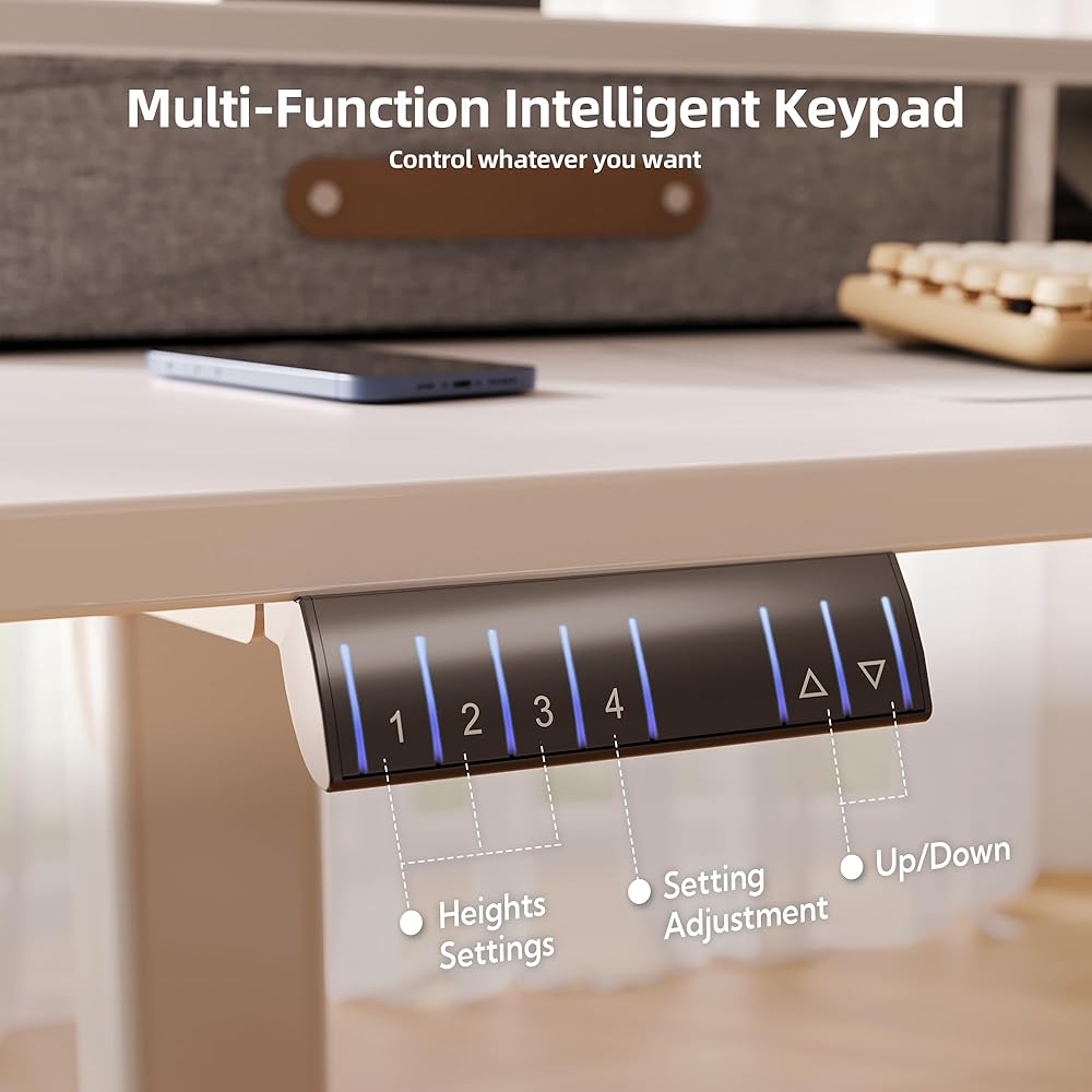 ارتفاع قابل للتعديل في راحتك: مع نظام تعديل ذكي لارتفاع الارتفاع ، يمكنك بسهولة التبديل بين المواقف والوقوف لتناسب احتياجاتك. الانتقال سلس وهادئ ، مما يجعل من الجهد التكيف دون تعطيل سير العمل الخاص بك. يمكن للوقوف أثناء العمل أن يساعد في تخفيف الانزعاج من الجلوس لفترات طويلة ، وتحسين الدورة الدموية ، وتعزيز وضعية أفضل ، مما يجعله مثاليًا لأولئك الذين يعانون من ساعات العمل الطويلة.