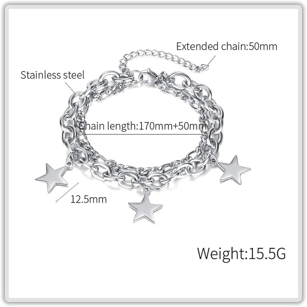 سوار Mgutillart Fashion قابل للتعديل على شكل سلسلة من النجوم المكدسة