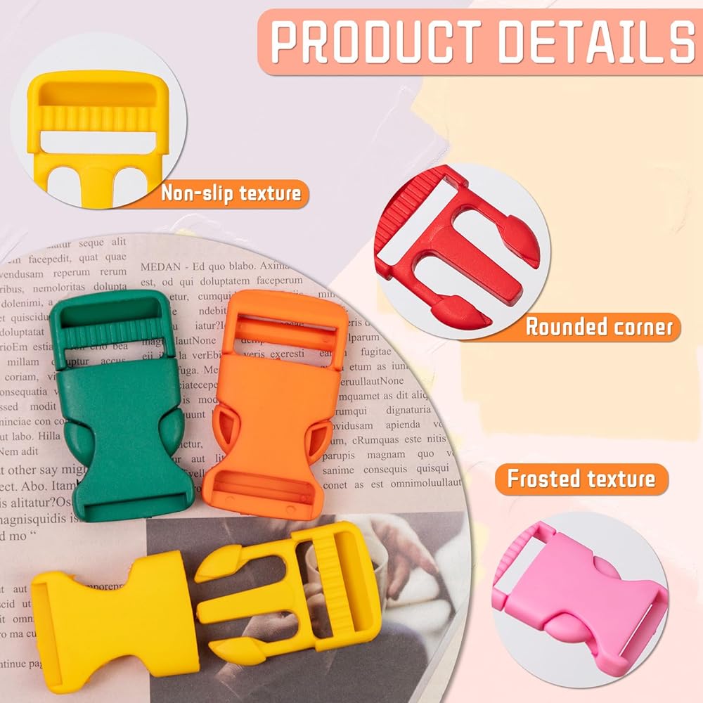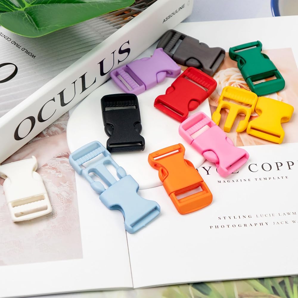 Package Contents: You will receive 20 1-inch buckles in 10 colors, 2 of each color: gray, light blue, black, yellow, orange, bright red, green, white, pink, and light purple. Quantity and color are very rich, can meet your needs.