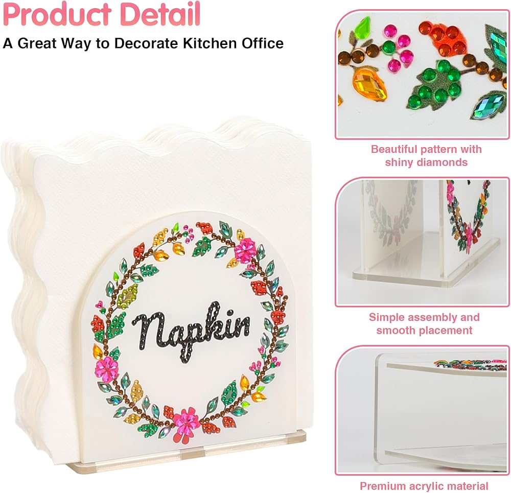 • Glittering DIY Kits: The diamond painting napkin holder set is full of color and does not fade. Suitable for kitchen, dining table, and desk decoration