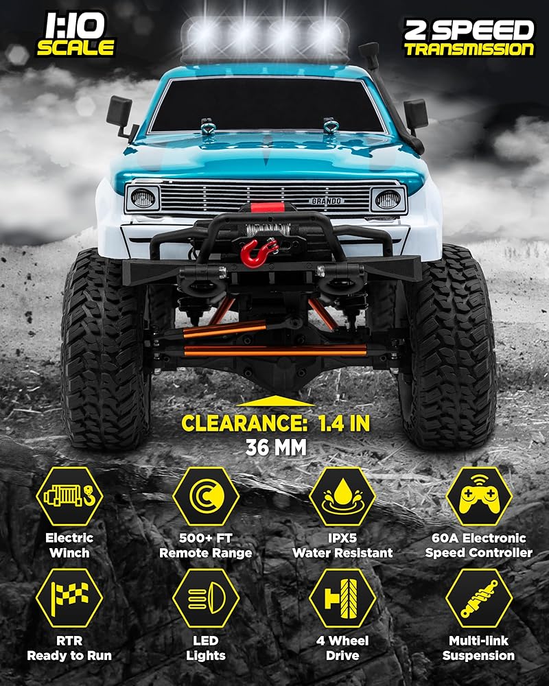 • المرح على الطريق - توجيه بسهولة! سواء كنت تتجول على الرمال أو الخرسانة أو الصخور أو أي شيء بينهما ، تم تصميم سيارة التحكم عن بعد للبالغين لتحملها.