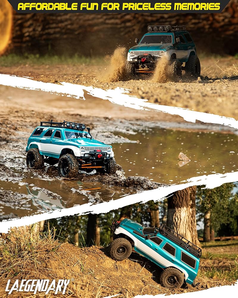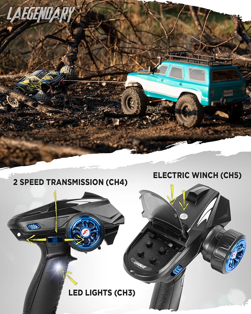 Laegendary RC Crawler - 4x4 على الطريق الزاحف شاحنة التحكم عن بعد للبالغين - RC Rock Crawler ، السرعة السريعة ، الكهربائية ، سيارة Hobby Grade - 1:10 ، مصقول ، أزرق - أخضر - أخضر