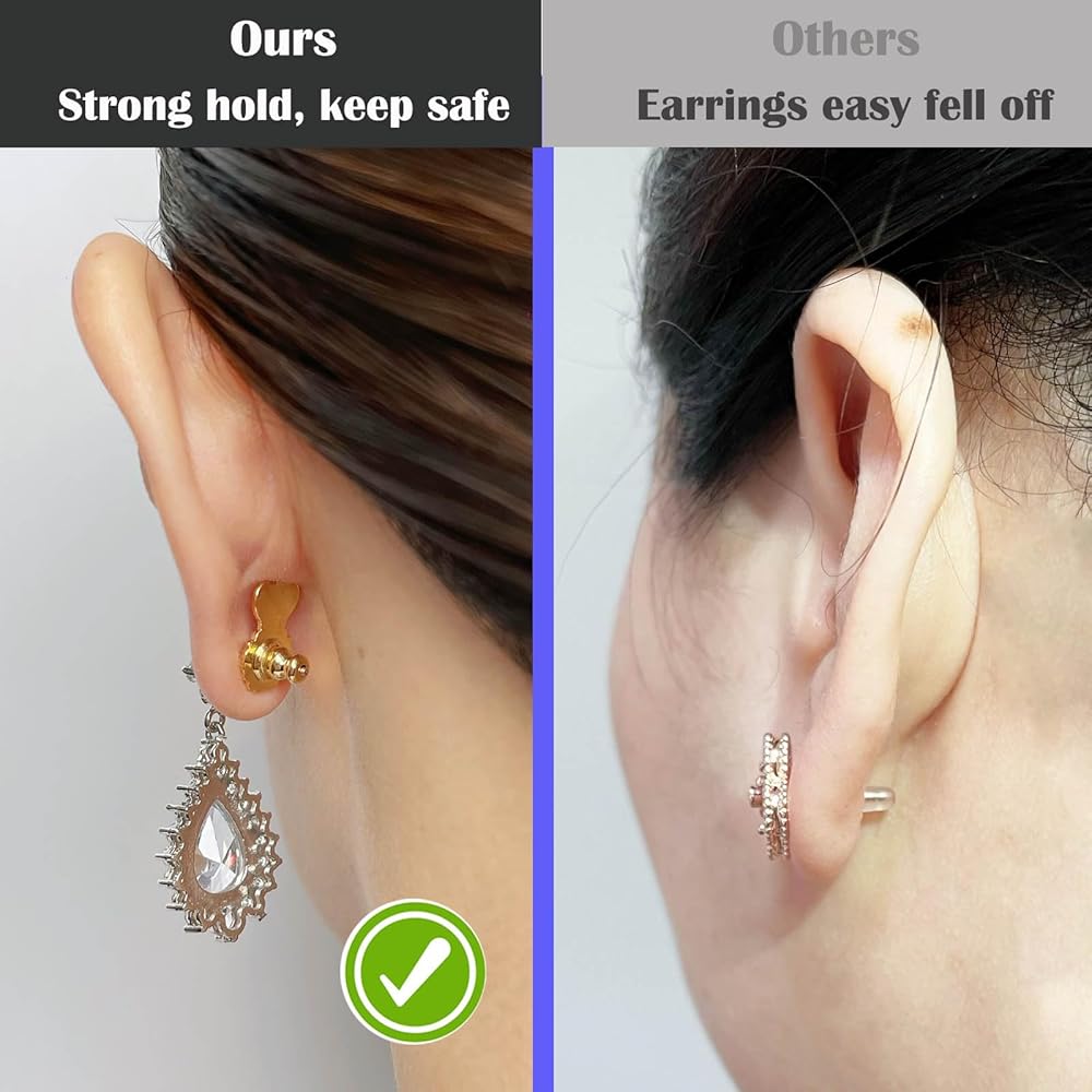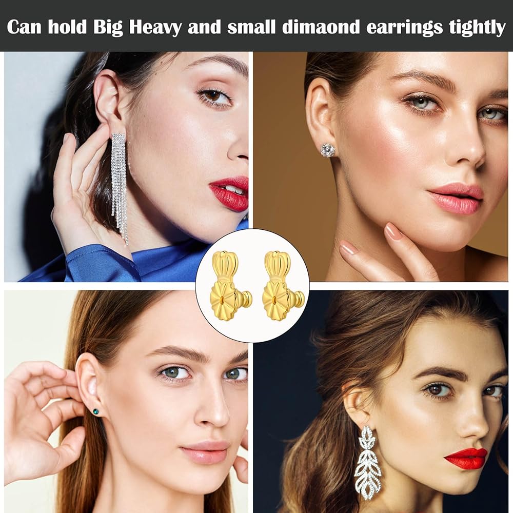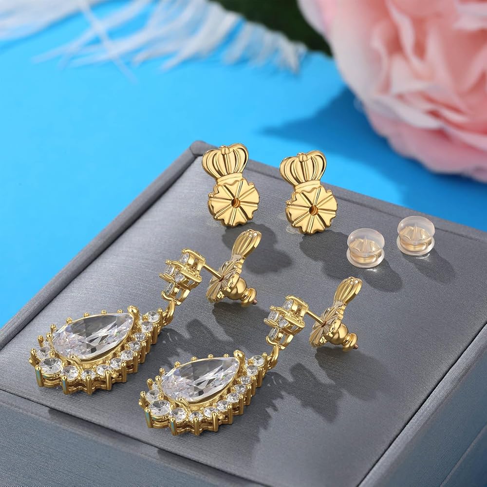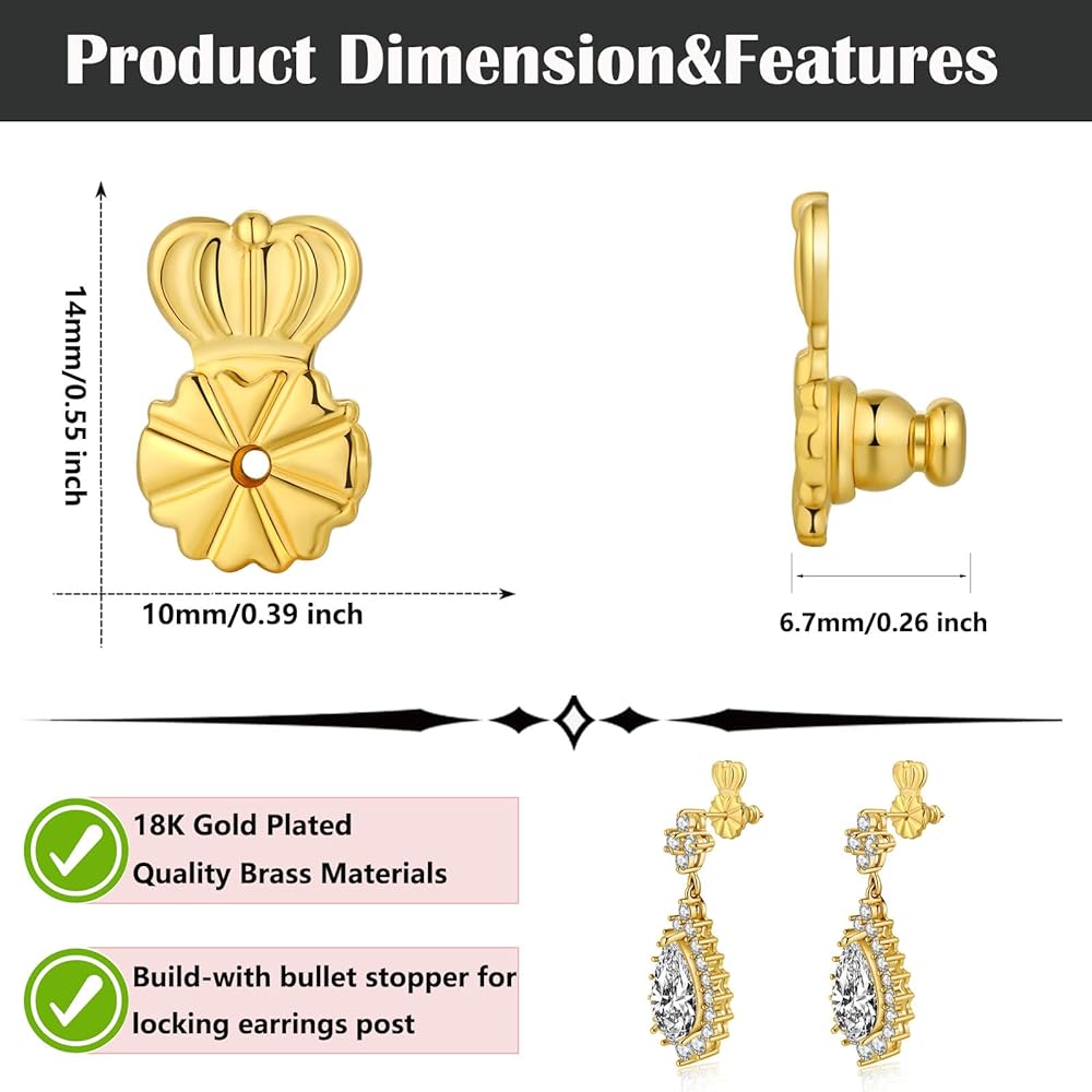 【حساسة ومريحة وسهلة الاستخدام】 رافعات شكل التاج وظهر القرط السيليكون للأمان والراحة مع قفل داخلي لتأمين حلق مثقوب. من السهل الفهم ، تنزلق قرط القابض في المقابض الخلفية على المنشورات بسهولة ، والبقاء على الأقراط لم تعد ضائعة.