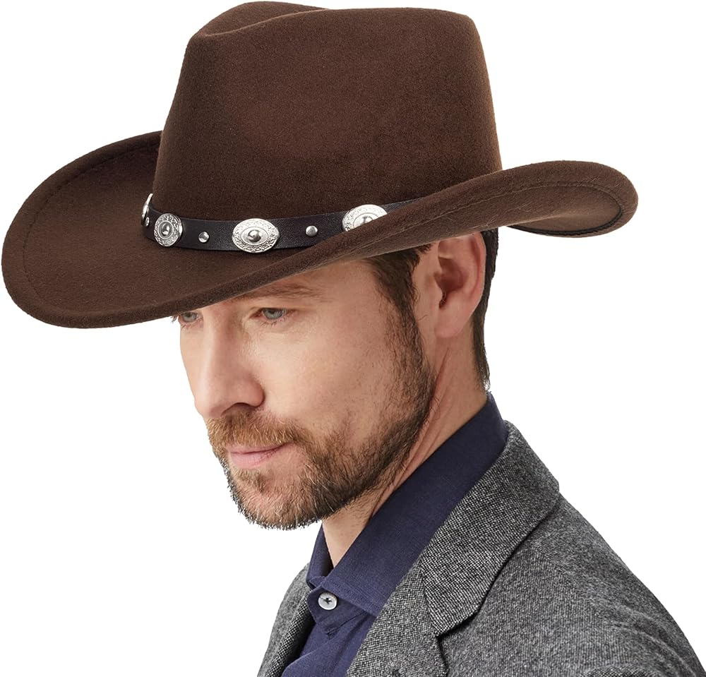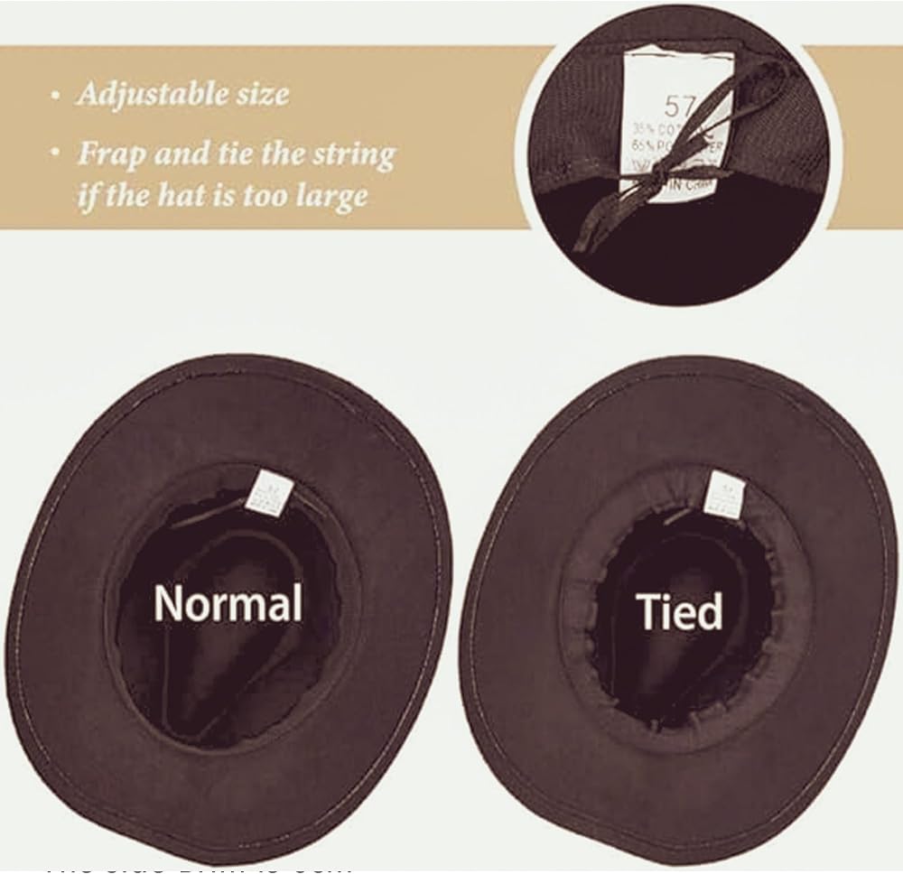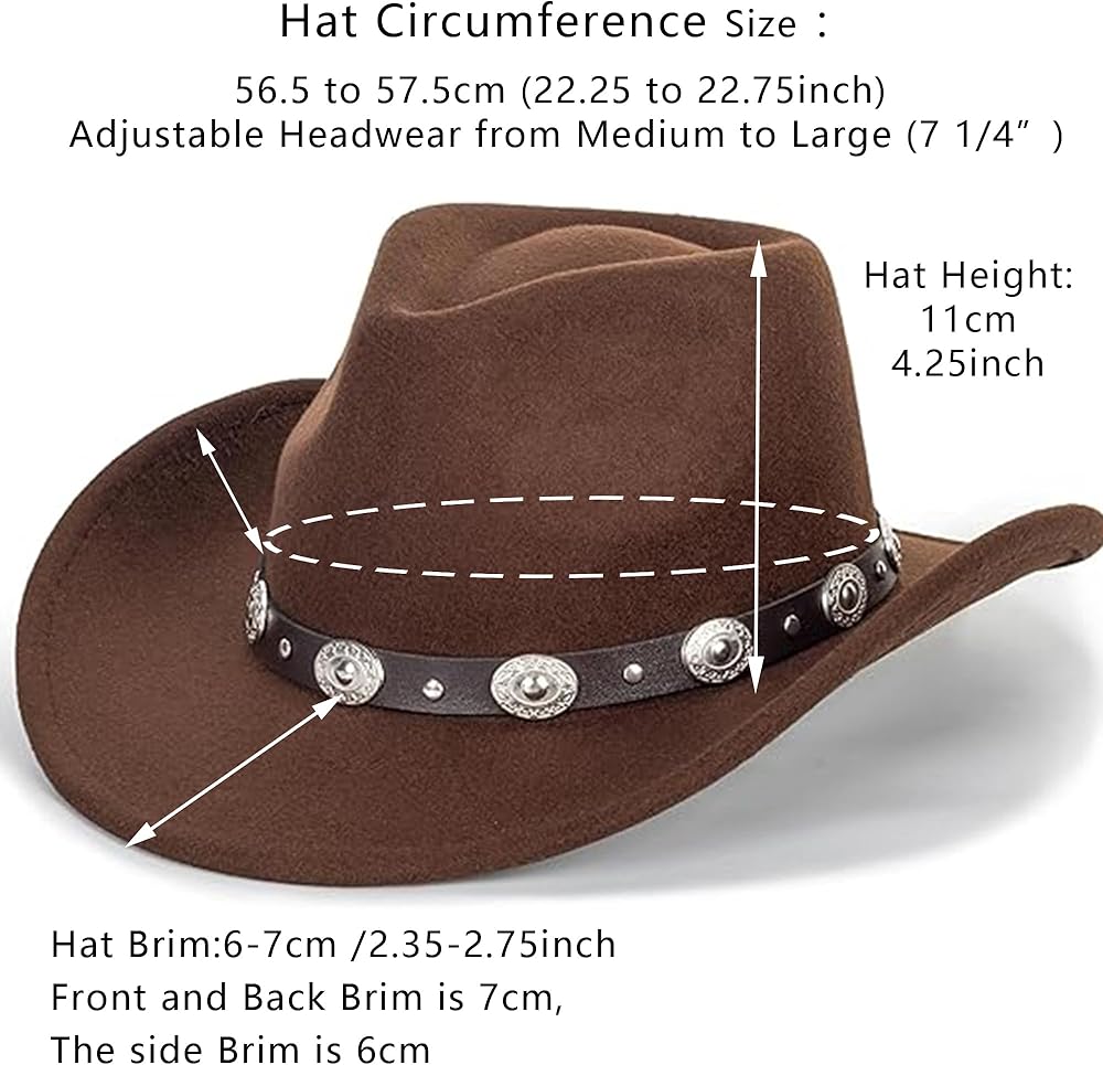 • المواد: مزيج لباد 65% قطن و35% بوليستر، تصميم ناعم ومريح وجيد التهوية. مقاس حوالي 7-7 1/8 (21.75 -22.75 بوصة)، وحوالي 3 بوصات حافة سلكية، رائع لأنماط رعاة البقر وفتيات البقر.