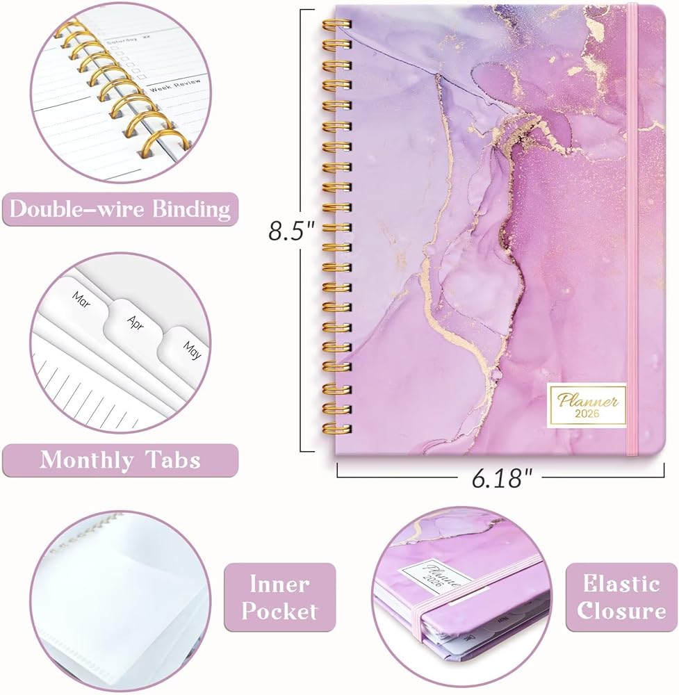 [التفاصيل الوظيفية] 8.5 "× 6.18" الحجم المحمول A5 | 12 علامات تبويب شهرية | ملزمة مزدوجة قوية | إغلاق مرن | نظرة عامة سنوية | صفحات الاتصال | خريطة رؤيتي والعقل | نظرة عامة على 12 مخططًا شهريًا | ملحوظات