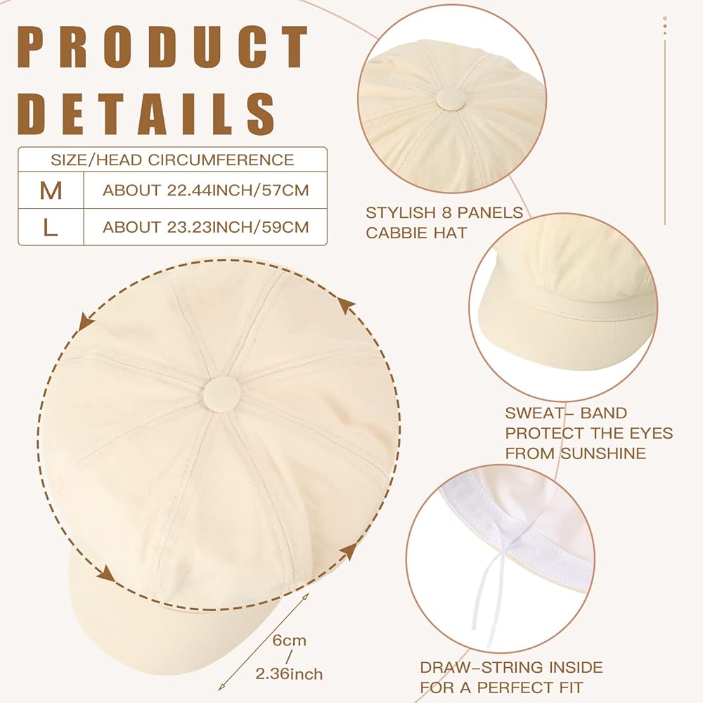 • مريحة وناعمة: القبعات المثمنة المصنوعة من القطن والكتان، مريحة وناعمة، ومناسبة للاستخدام طويل الأمد وتمنحك تجربة ارتداء جيدة؛ يمكن تنظيفها، ولكن يرجى الحذر من عدم استخدام فرشاة لتنظيفها، مما قد يؤدي إلى تجنب التكديس