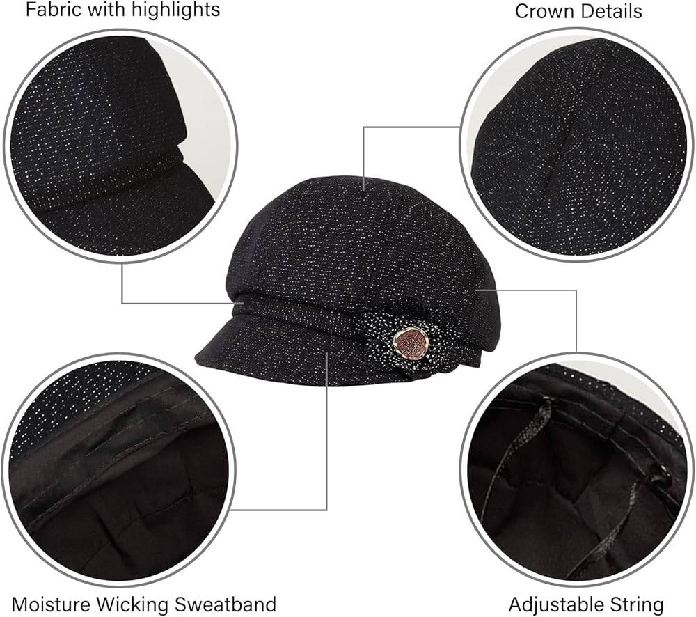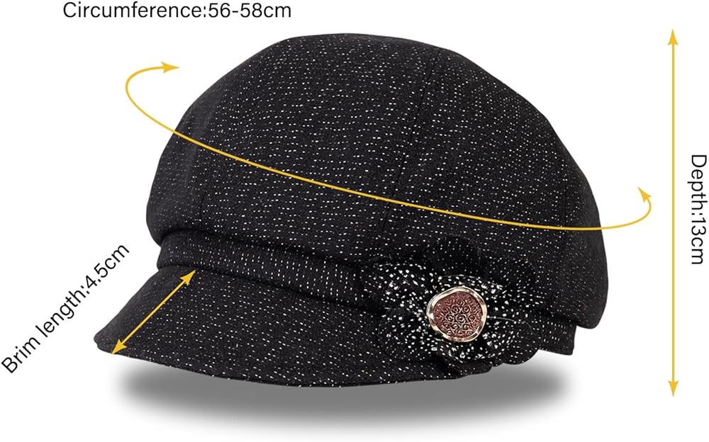 مفهوم التصميم: الحافة الناعمة للقبعة الكلاسيكية اللطيفة مزينة بزهرة أنيقة ستسلط الضوء على مزاجك. قبعات موزع الصحف الأنيقة ذات الطراز العتيق ذات الثمانية ألواح للنساء المراهقات. طراز كلاسيكي أنيق وجميل، مريح، مسامي، تصميم خفيف الوزن، يحافظ على جفاف الرأس؛ مناسب لجميع أنواع المناسبات الرسمية أو غير الرسمية، يجعلك أنيقًا وساحرًا.