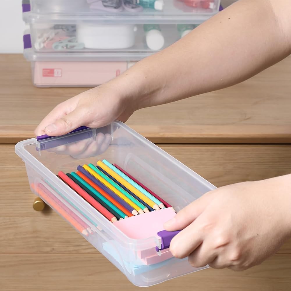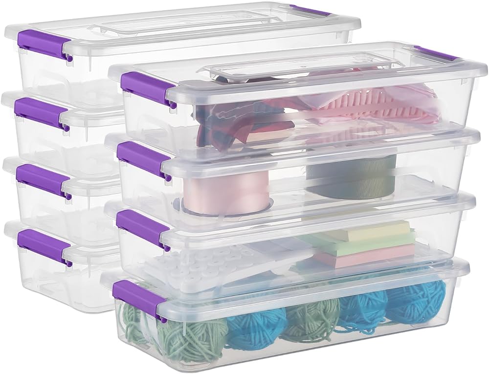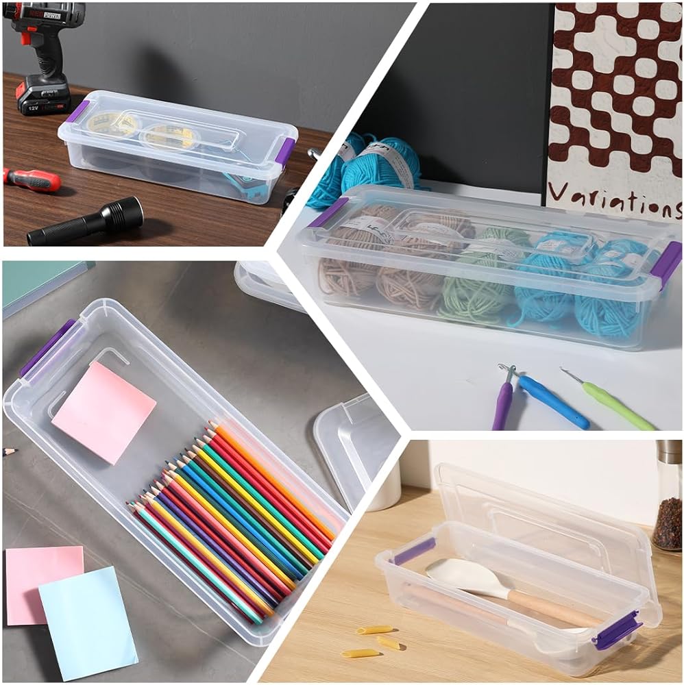 4 حلول تخزين الحزمة: تحتوي المجموعة على مربع حاوية تخزين Clear 4 (13.8 "× 11.4" × 3.5 ").