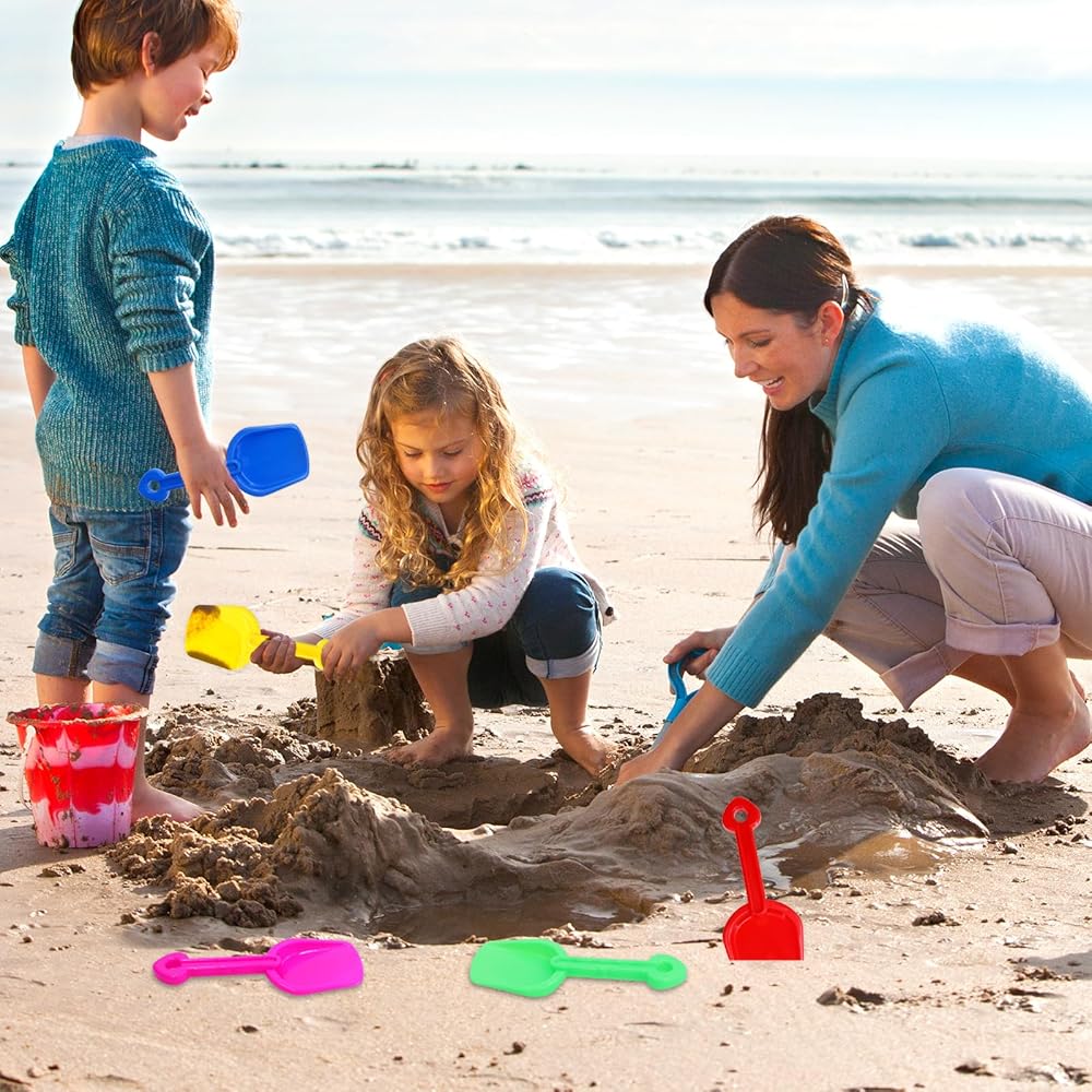 • تشمل الحزمة: 12 مجموعة من مجارف الرمال مع البطاقات والشرائط والأكياس البلاستيكية