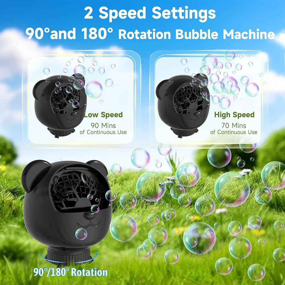 【🔄 90 درجة/180 درجة الدوران التلقائي-تغطية ممتعة أوسع】 مزود بنظام دوران ذكي ، قم بالتبديل بين 90 درجة أو 180 درجة لتفجير الفقاعات في أقواس أوسع وديناميكية. مثالي للألعاب التفاعلية وصور الأحداث والبيئات الغامرة في أعياد الميلاد أو حفلات الزفاف.