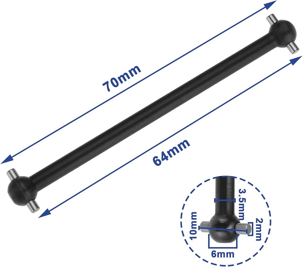يبلغ قطر العمود 3.5 ملم ، وقطر الدبوس 2 مم بطول 10 مم ، وقطر كرة المفصل هو 6 مم. الطول المتاح 70 مم ، وطول التثبيت 64 ملم. يرجى تأكيد الحجم بعناية.