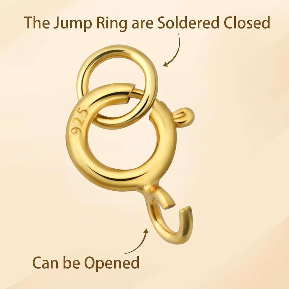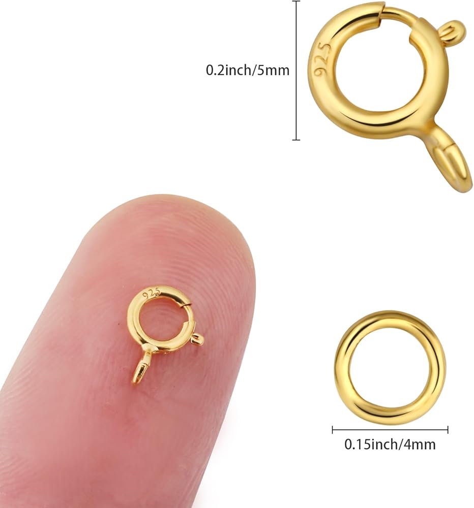 • Wide Applications: the gold Sterling Silver spring ring clasps suitable for various DIY jewelry making, such as necklace and bracelet. The spring clasps and round jump rings can be applied to extend the length of chain. And use spring clasps for broken necklace clasp replacement.